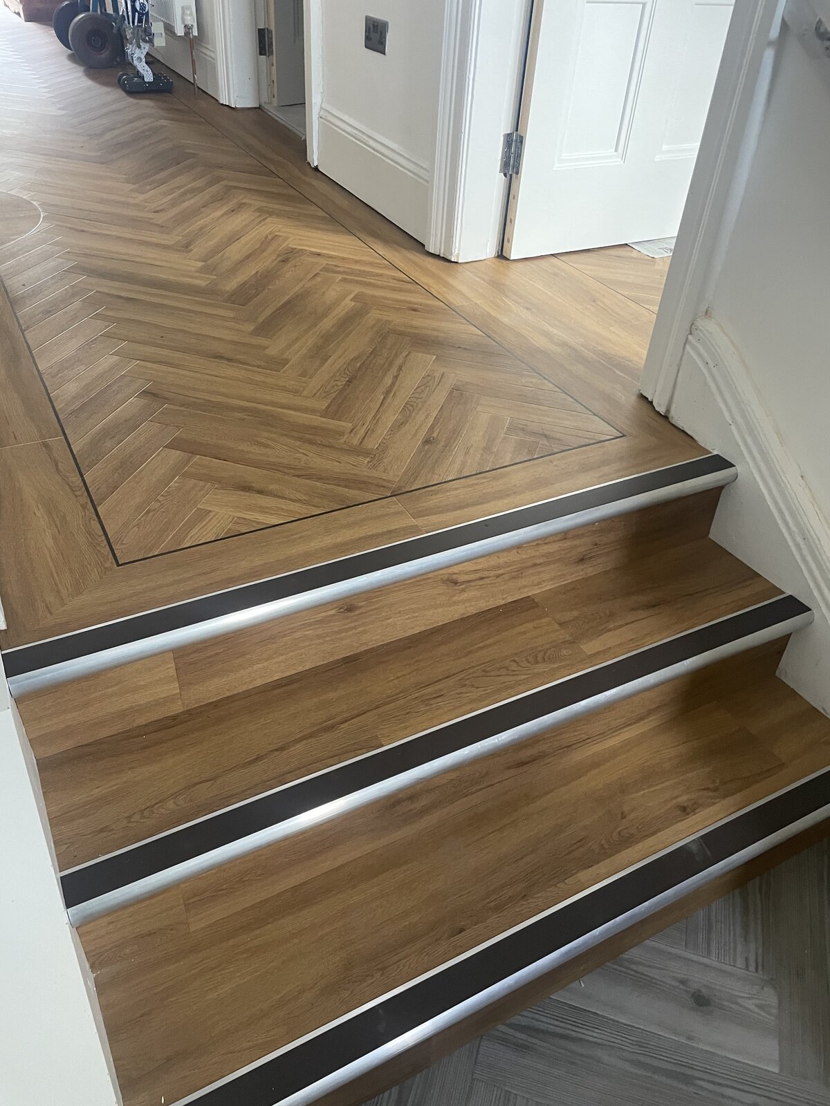 Im wanting to install laminate up to my top step and can’t seem to find a product that would be suitable