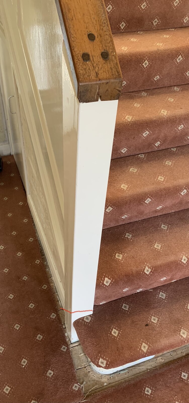 If the new newel is joined to the old white I would have to take the old back to the bare wood to try match it after varnishing and most likely there will be a visible join?