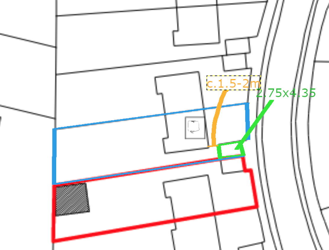 The garage is one of a pair - the neighbours is directly attached to the existing garage, and the garage of interest in in green