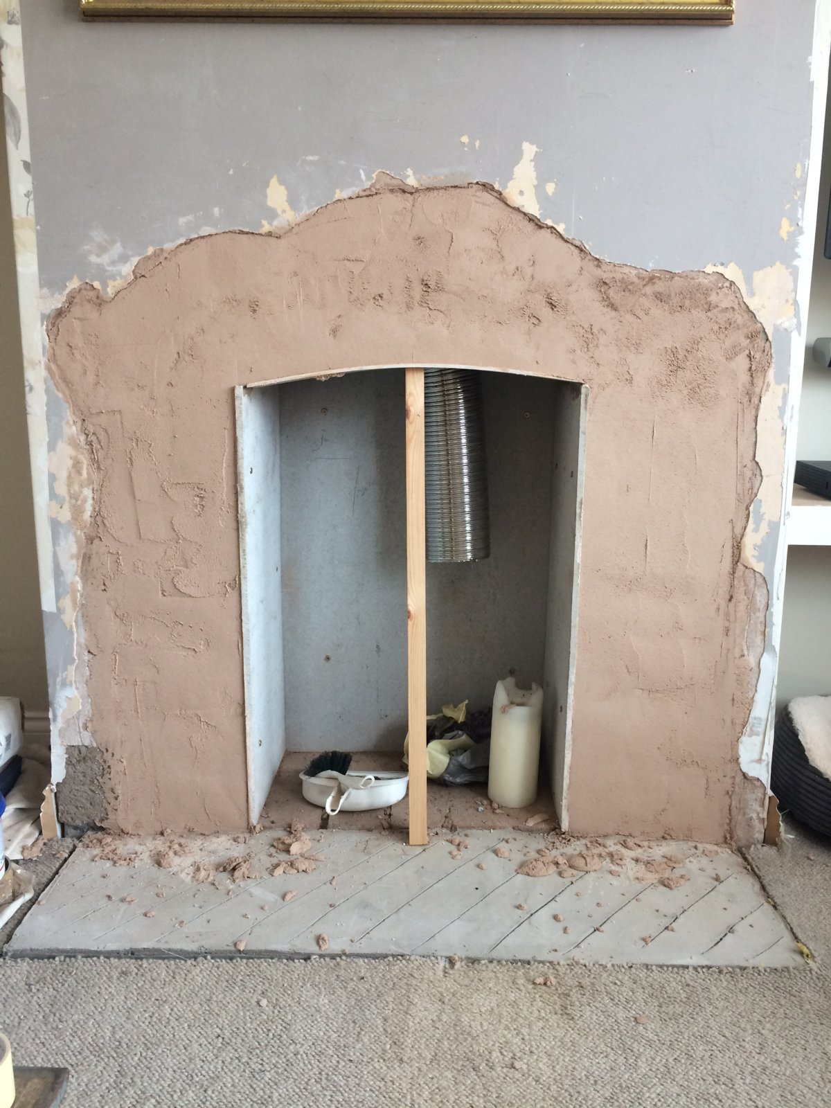It all started when I was decorating the living room. I had changed sockets, skirting, architrave, etc. and we'd picked some wallpaper for the chimney breast. Along with the plastered-over 1960s tile surround though, it didn't do this feature wall justice and I couldn't help but think of Del Boy's flat...