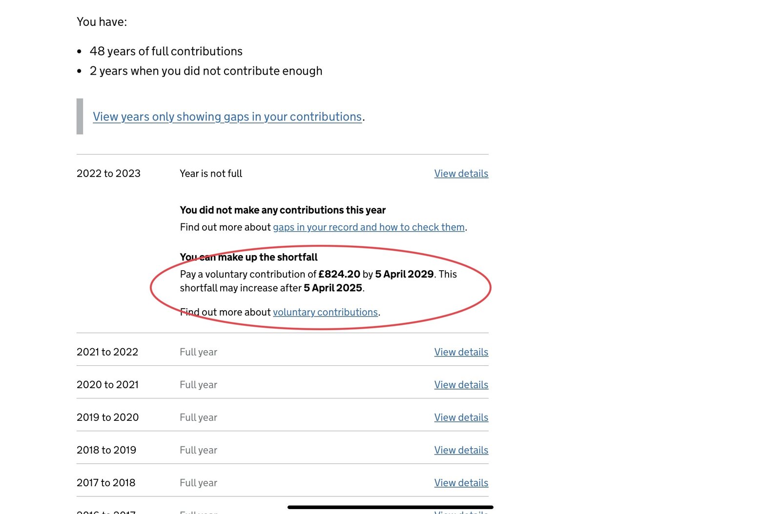 But there is currently in place a temporary extension to 5th April 2025 (i.e. next year) to buy NI contributions for gaps between April 2006 and April 2016 (if eligible) and also 16-17 and 17-18 years. So up to 19 years worth.
