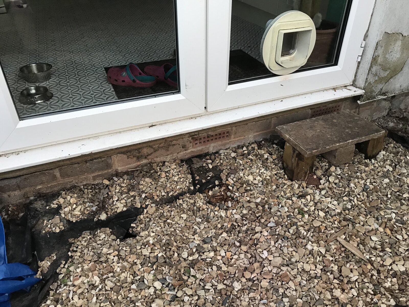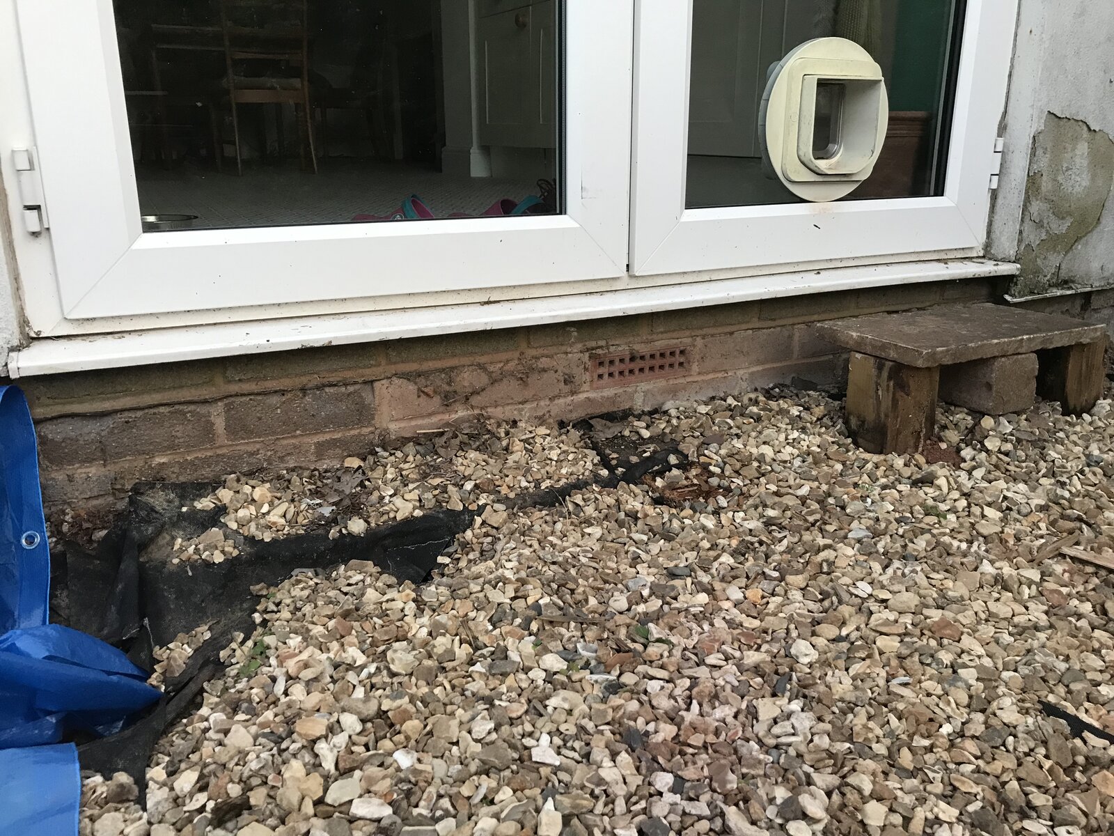 I’ve removed rotten decking and planning to lay a patio. Patio level needs to match other paving, which is 3 bricks down from the dpc in these pictures.