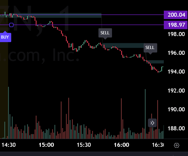 The Amazon 54.50 looks OK, but you closed when the price popped up at 15:03. OK, but then it went on down, 2 minutes late you must have gone for a cuppa?