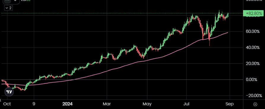 Apple could be a good buy about now, it's at the 200 MA. That doesn't happen very often. I think they have another "event" coming up which was a monster last time. At the mo they don't have a Large Language AI product in their range. They have a history of coming to the market a bit late but with a very good product. They don't have to be much better foi us to be able to say "Ok Apple here's £100k, trade it on the stock market (or the FX market) until it's £1m. Should only take a week.
