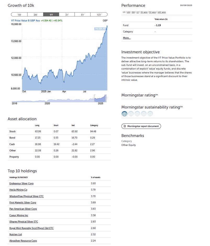 So HL: give you charts like this with some funds I have. This is one ISA. Gold, minerals metals like palladium etc.