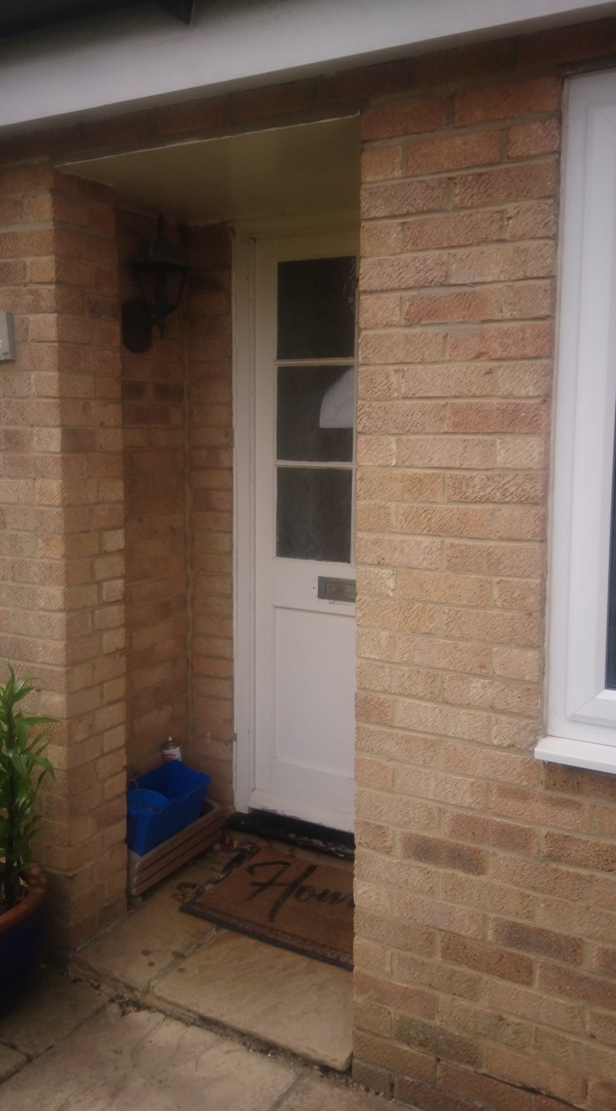 I think this is a small storm porch on the front of our 1980s detached house. The front door is set back from the front of the house and I would prefer to bring it in line with the rest of the building.