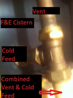 I am confused by this as my understanding of a combined F&V is that air cannot (easily) get in as the water level is above the combined F&V pipe.