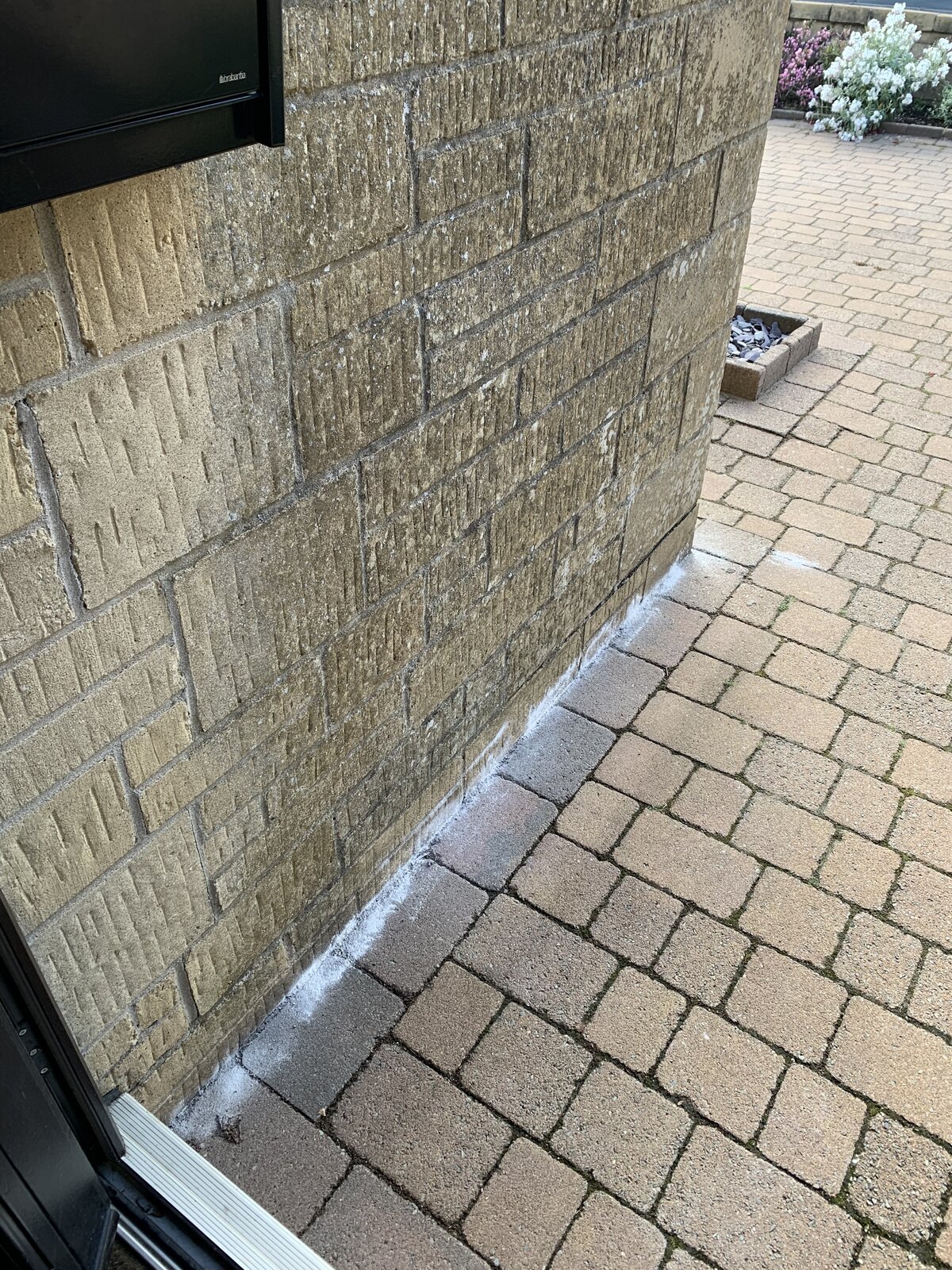 In terms of what outside looks like - there’s another picture attached (the white stuff is ant powder and not efflorescence).