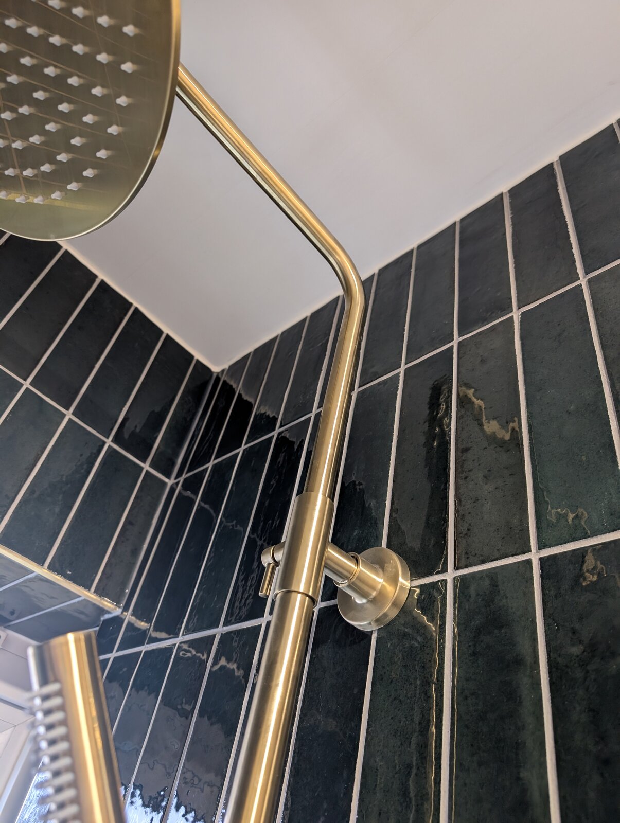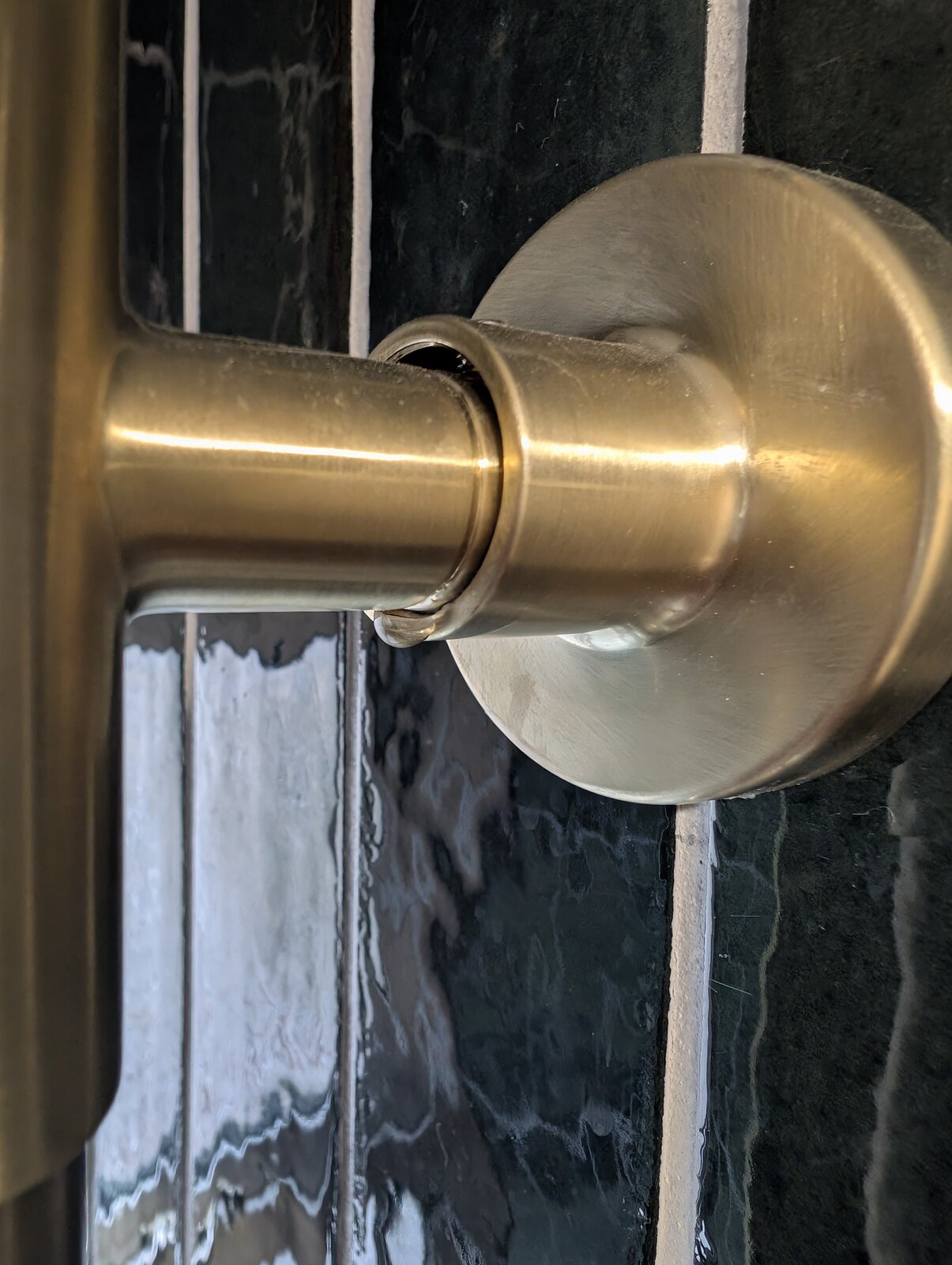 I just got my bathroom renovated and the shower has a very strange leak. Basically it slowly drips from the fixing plate that holds the extension rod. I have attached some images for you to see.
