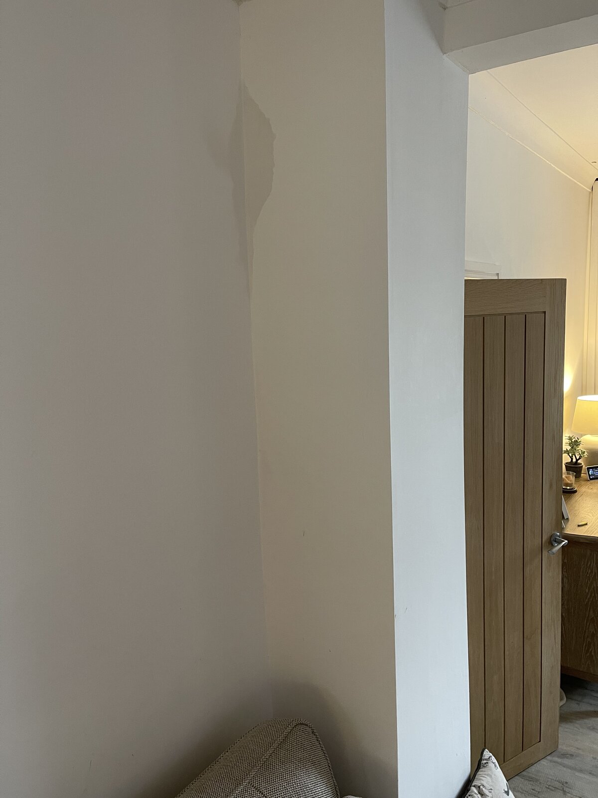 Hi there In the last few days this has appeared on the corner of an internal wall downstairs. It’s progressively got bigger. Ceiling is dry and no pipes are leaking upstairs (also no pipes in that wall)