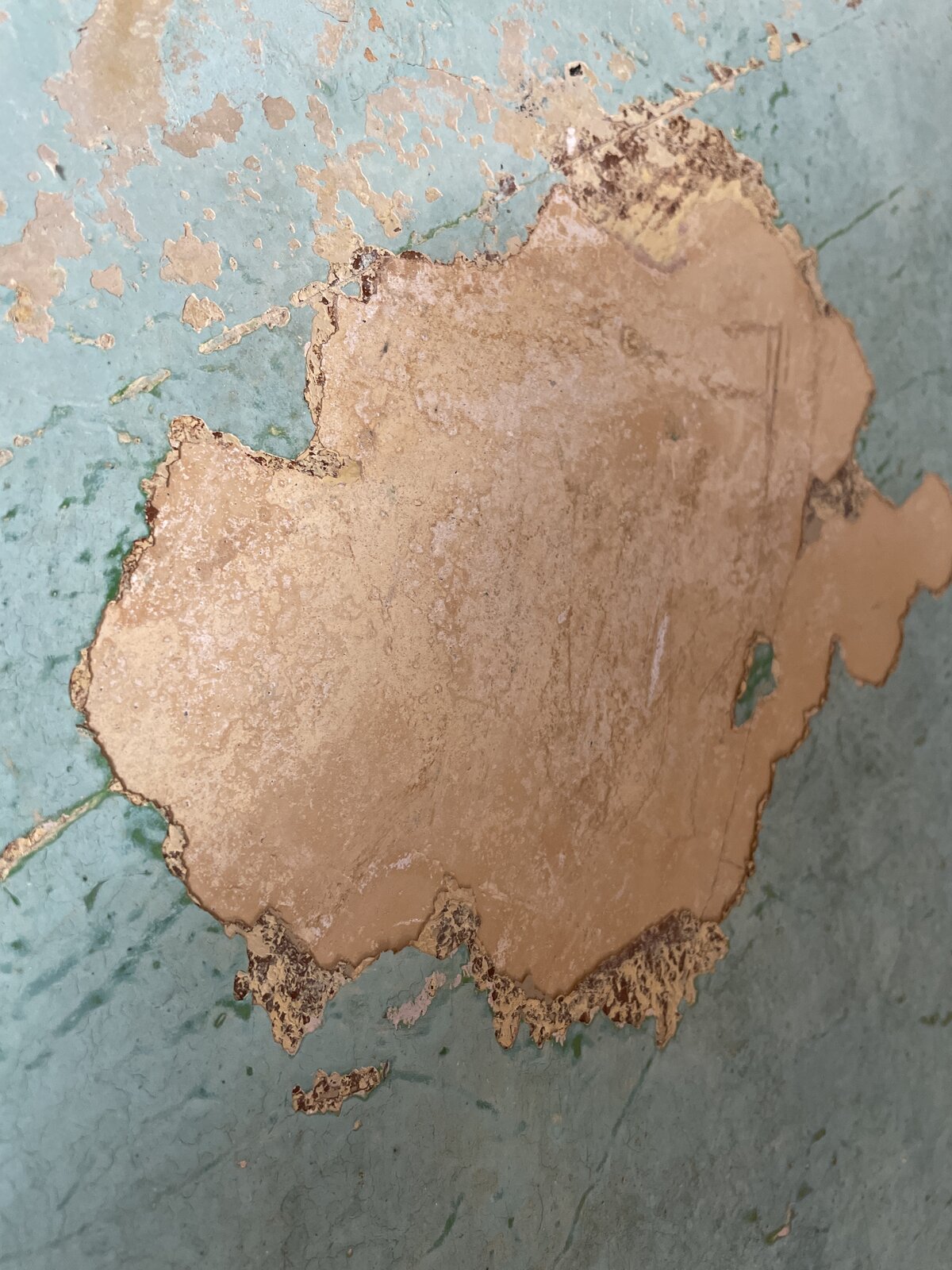 Parts of my stairs and landing walls have some sort of old wallpaper sealed or painted over with some green colored paste? Does anyone know what it is and what quickest/most efficient way of removing this would be? This was all underneath a couple of layers of other wallpaper. The house was built 1930’s. Cheers