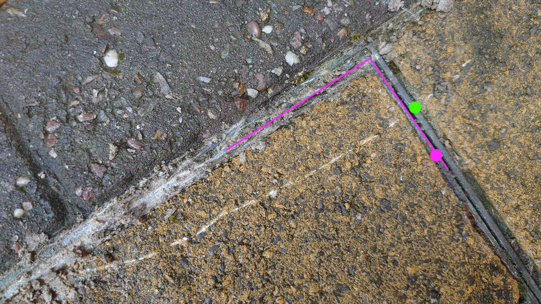 The photos below show what I'm dealing with. The drain cover is recently wet around the joints even on a dry day - and you can see water through the keyholes. Coupled with the drain-smell in the en-suite that leads directly to this drain cover area makes me think these things are quite possibly related. However, until I can get this cover up, there's not a lot I can do. I've got the tools and there's not even a sniff of movement. Am I right in thinking the green-spot area is fixed and it's the pink-spot area that should be coming up?
