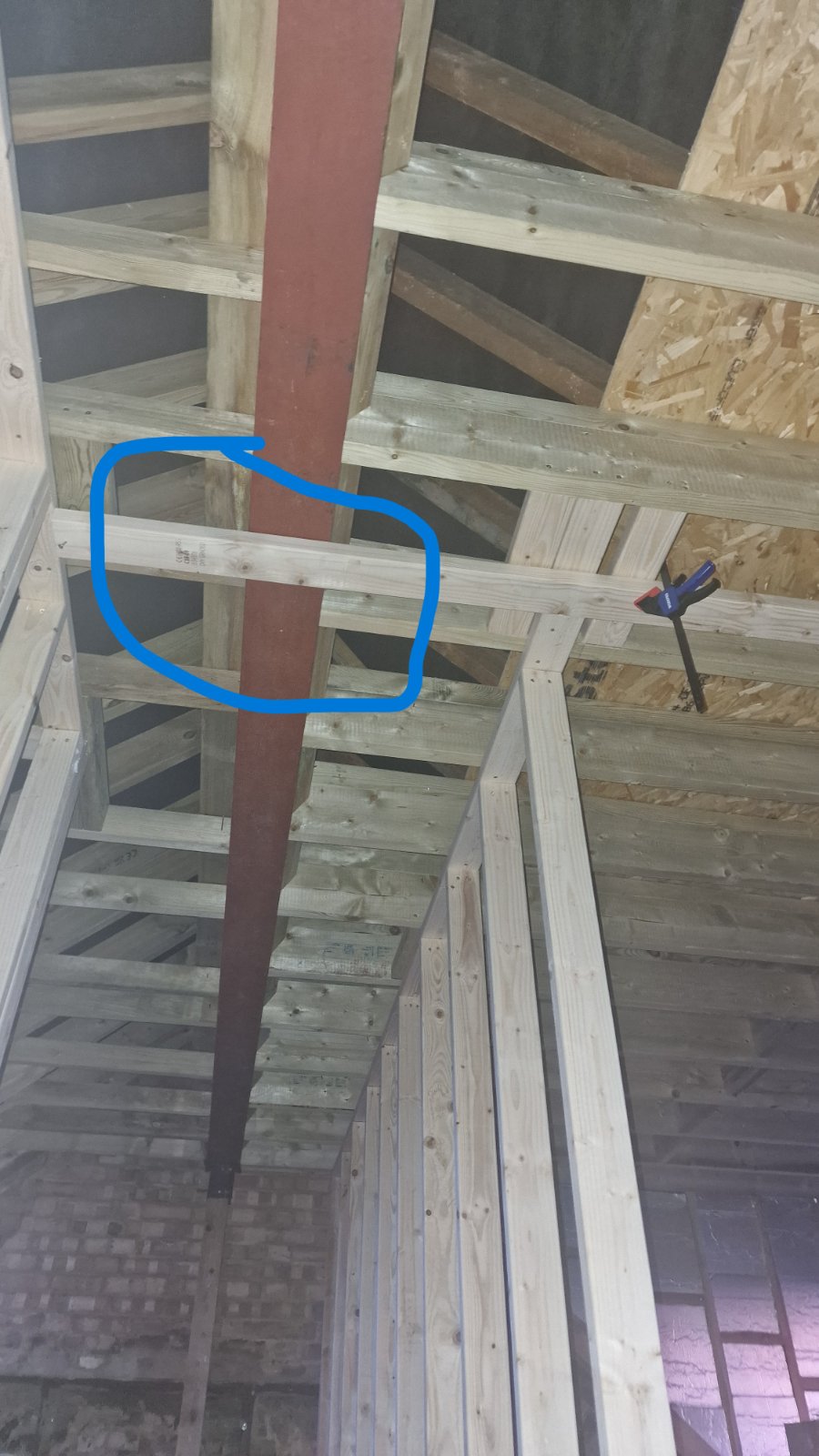 I have added noggins to the roof joists and I dont really need to attach to the steel beam.