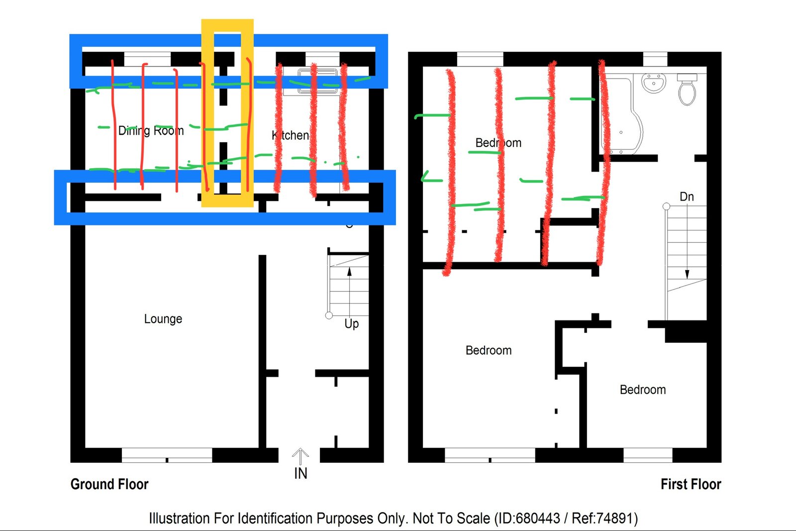 So we bought a house and because of kitchen was so tiny we have decided to knock down a wall between kitchen and dining room to open space.( see yellow square on picture)