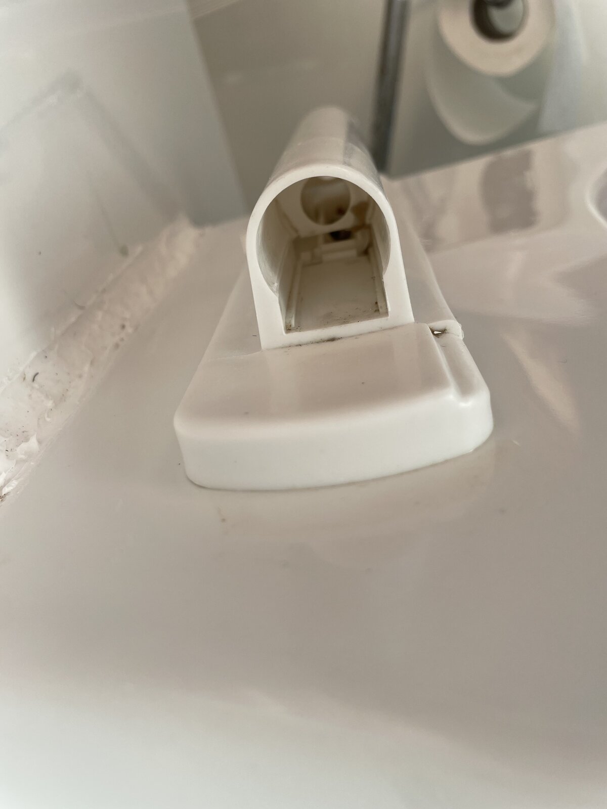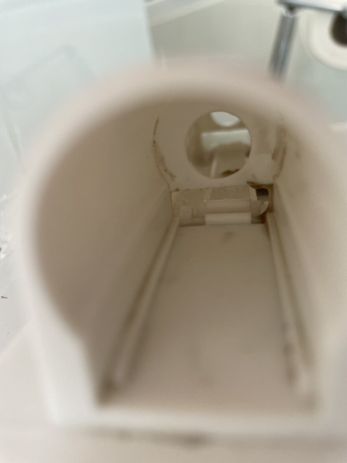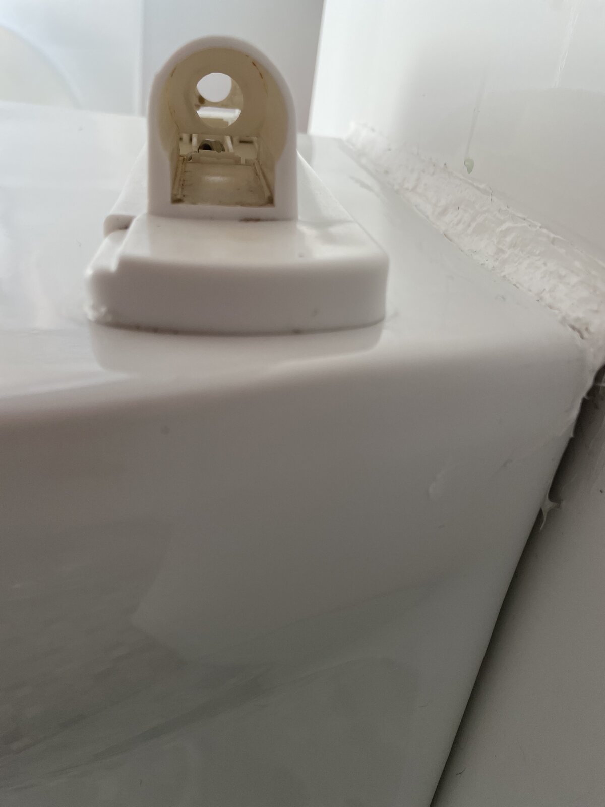 I'm trying to replace a toilet seat but the fixings are hidden by a plastic panel with no visible way of releasing it. The panel only moves slides slightly forwards&back and side to side. See attached photos of the top and each side. There is a small loose bolt in there from when I removed the seat but otherwise it just looks like empty plastic inside.