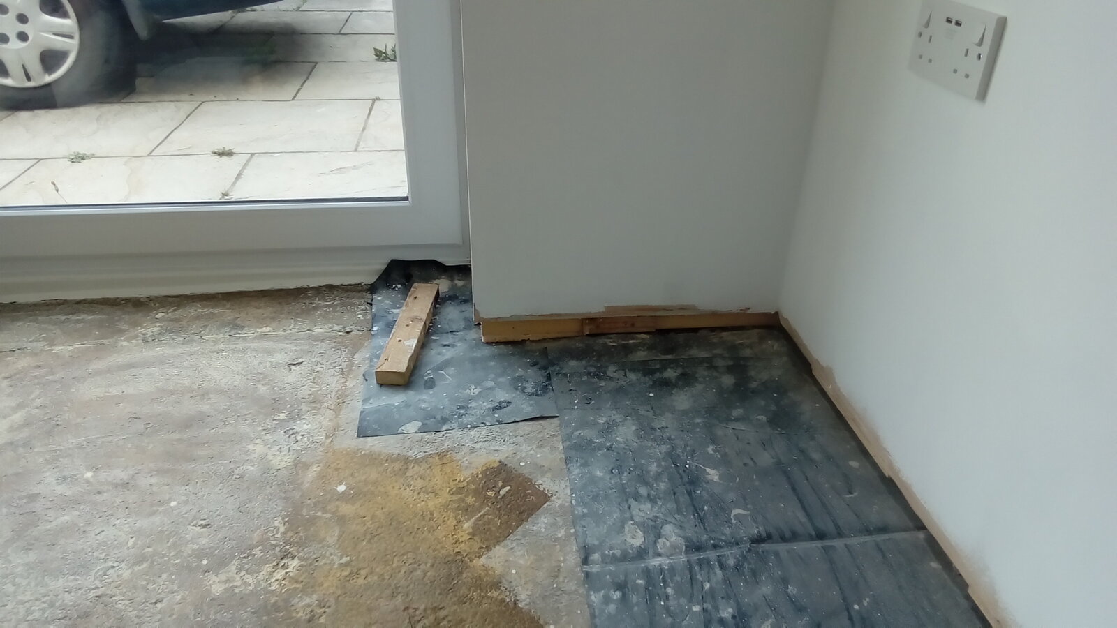 The tapering strip of upvc make-up along the btm of the sliding door shows that it's a bit tight at one end.