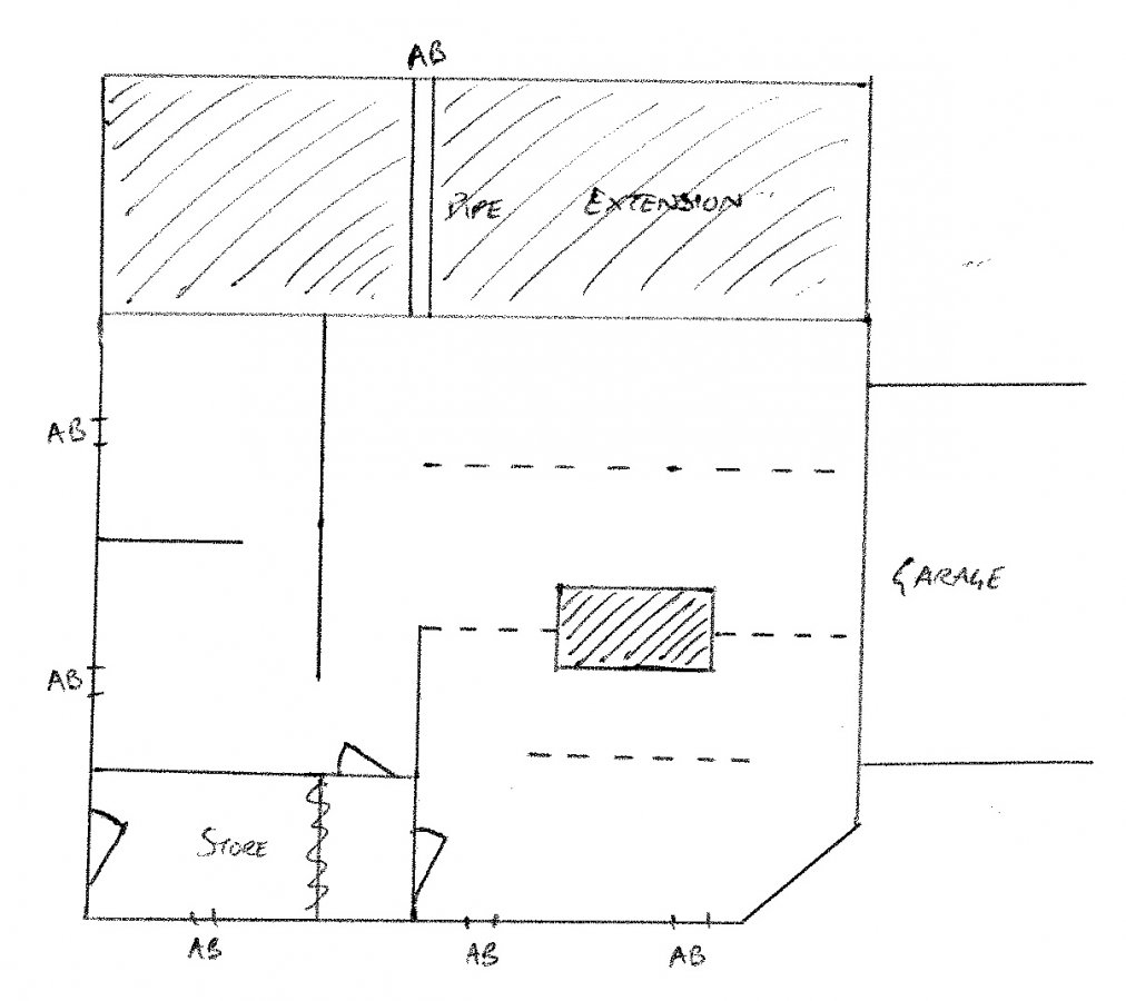 The house is on a slope and the sub floor is stooping height at the front of the property decreasing to maybe 8-10 inches (below joists) at the back of the original house. The extension is the full width of the back of the house and as a result all the original air bricks are blocked, the extension having a solid floor. The only ventilation at the rear is through a single 4 inch pipe running out to an air brick.