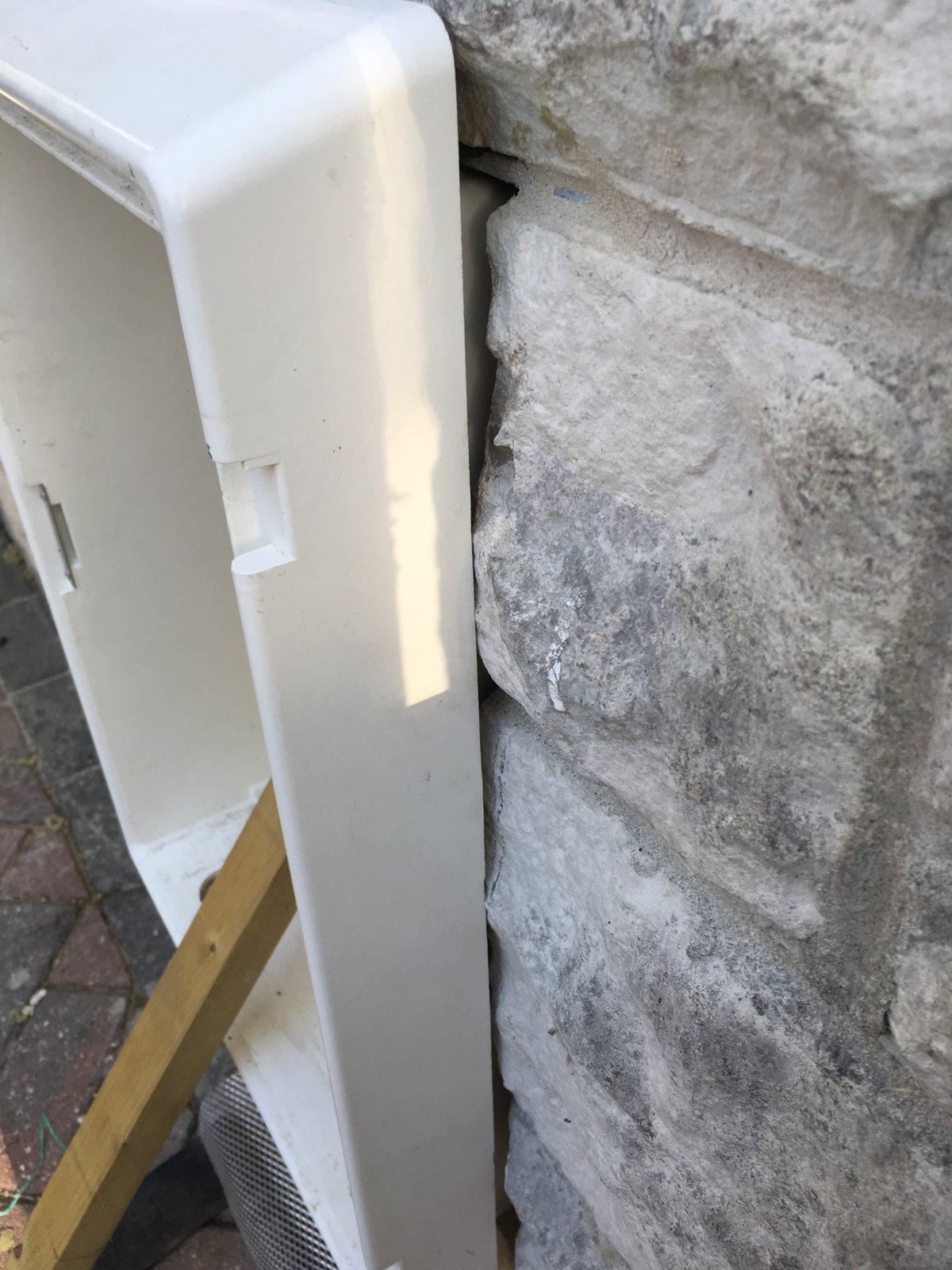 The box is almost installed, just need to squirt some foam in the sides. Then I wanted to rake out some of the foam around the sides and finish off with mortar pointing.
