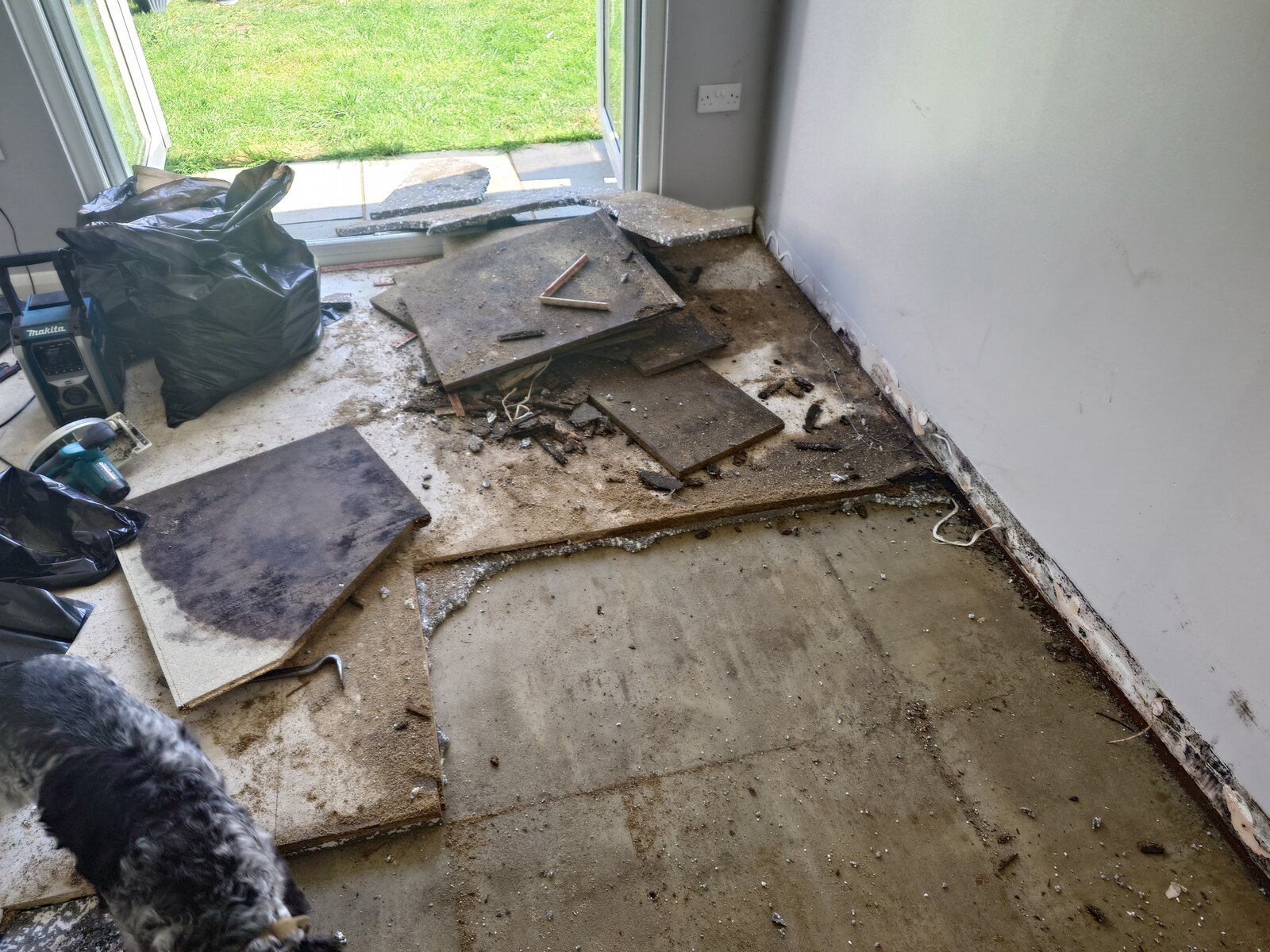 My mother in-law summer house was built 4 years ago, over the years we have noticed that there is mold on the bottom of the wall leaning up to the ceiling, we pulled back the carpet and the floor boards was wet, so decided to take up the flooring in the living room area and in the office dividing rooms cos of damp and mold, i took the floor boards up and the insolation and is was soaking in both rooms, the guy that built it didn't put any DPM down on the concrete slab. So I've been told some how I've got to raise one side of the structure and take out the soaked floor timbers and replace with new timbers and put DPM down over the concrete and put new insulation on top of the DPM and then new floor boards will go on top. Will this solve it? Oh and I think I will have to take the ceiling down in the living room area cause of the mold.