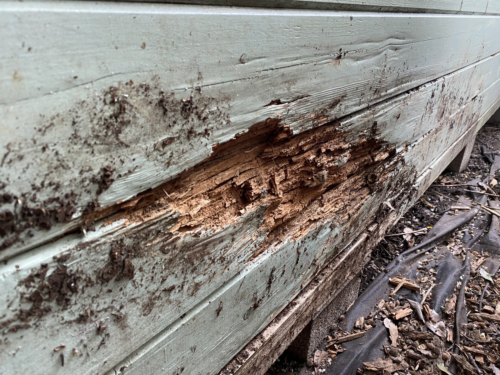 3. Rotting of rear beams, depth 1”. Thinking Ronseal Wet Rot Hardener.