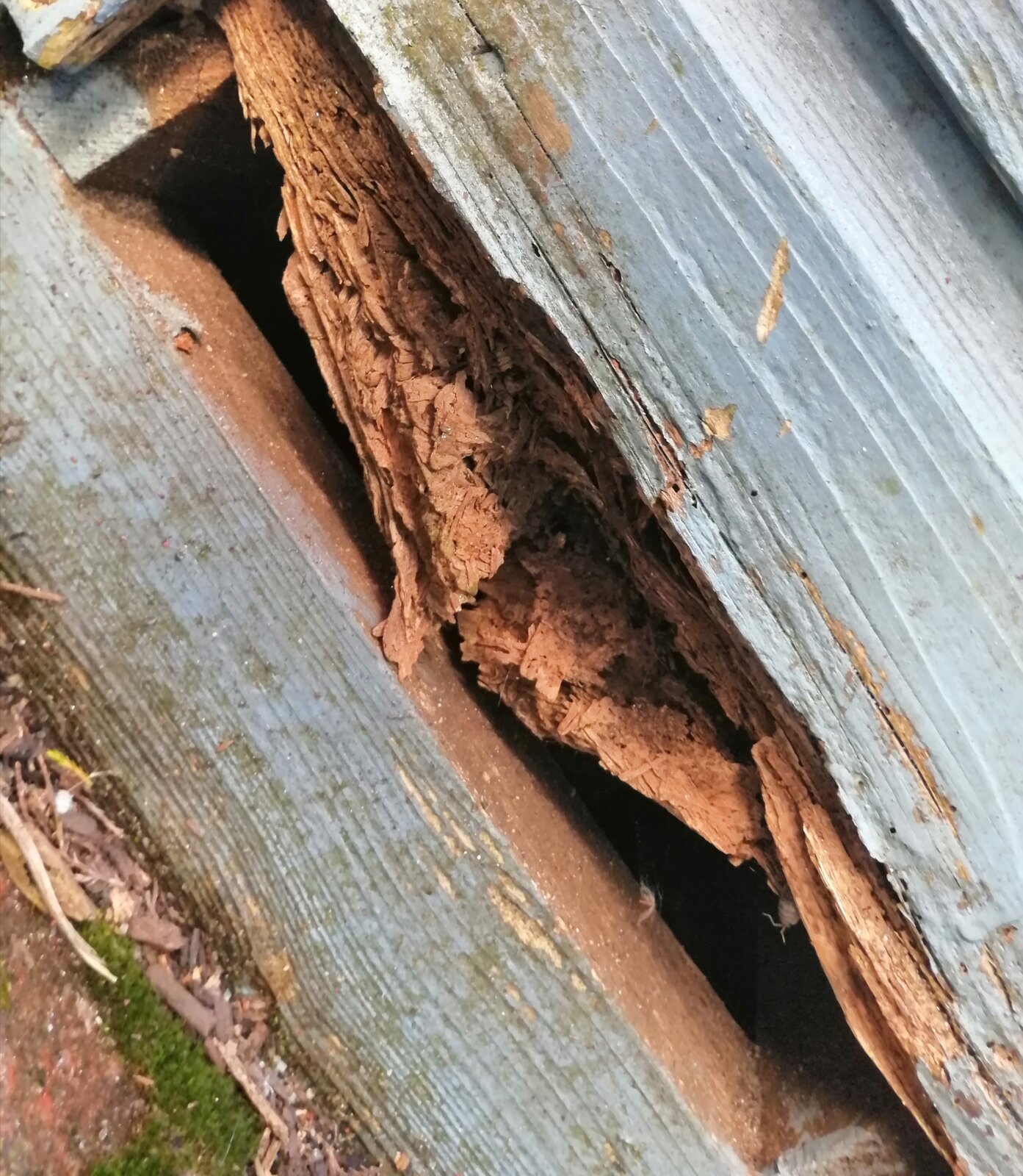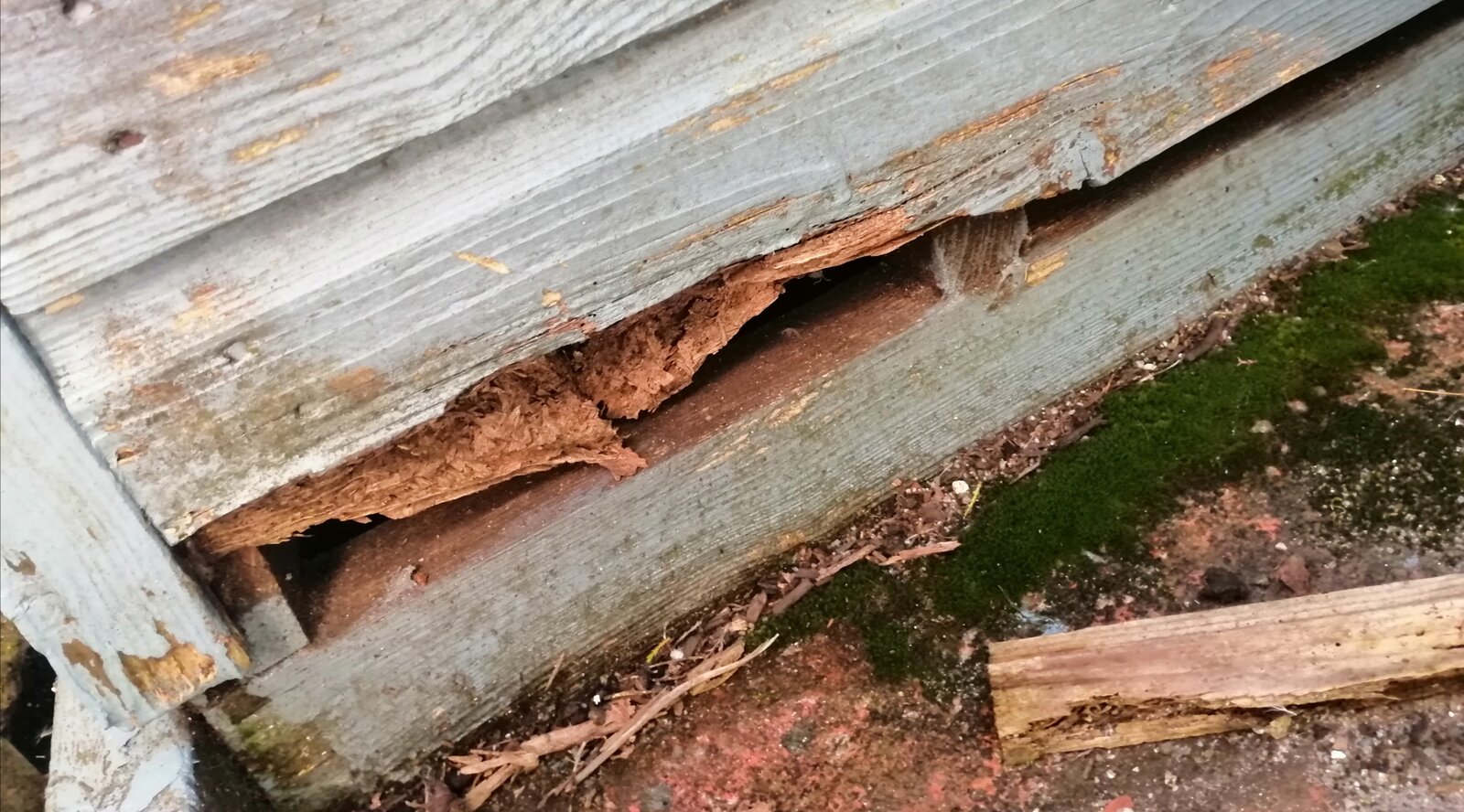 Then you have the t and g that's rotten on on first board up. Then the biggest problem they did lay down a patio for it, but they put the base directly on to that. No air gaps what so ever.
