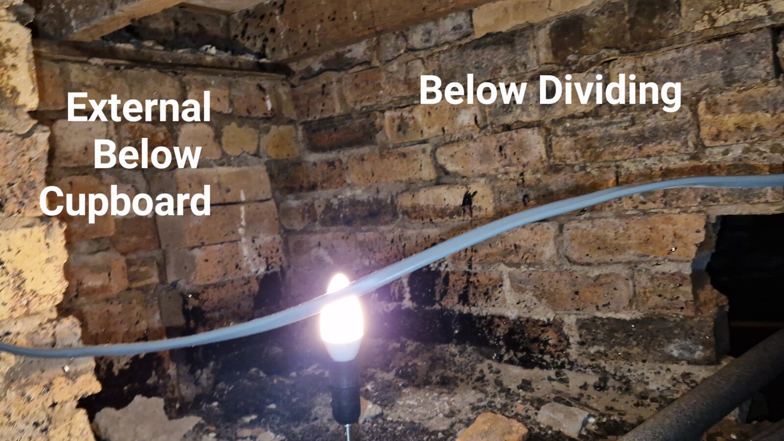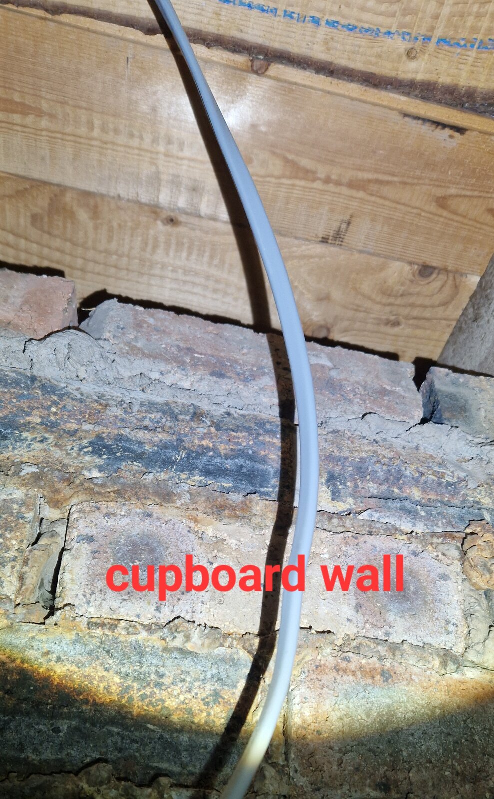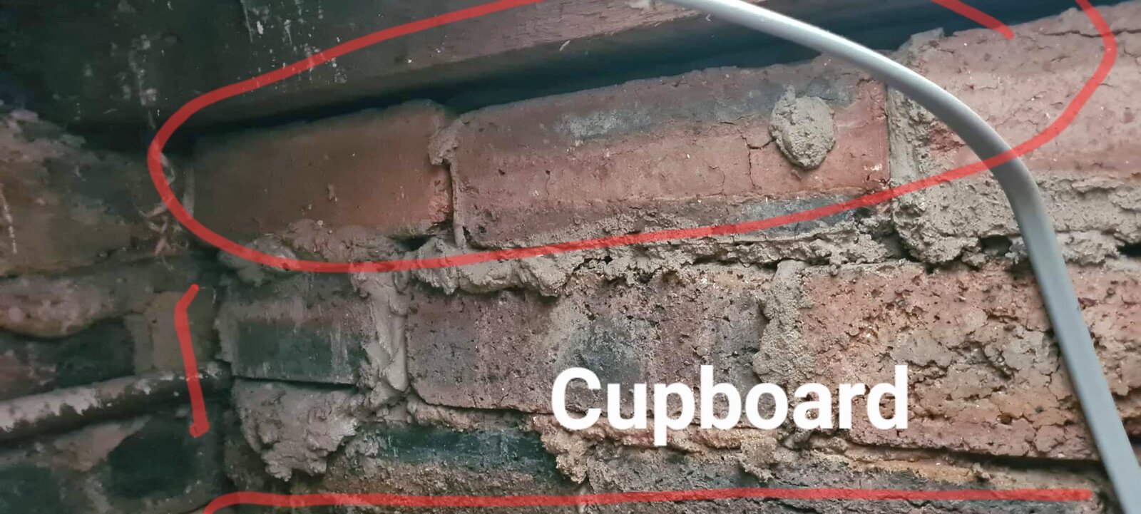 Finally got round to looking above the cupboard. Seems there is only one supporting wall. Cupboard walls aren't touching joists above, so good to knock down. Just need to be careful of the water pipe and try cut the concrete shelf, that could be part of supporting wall.