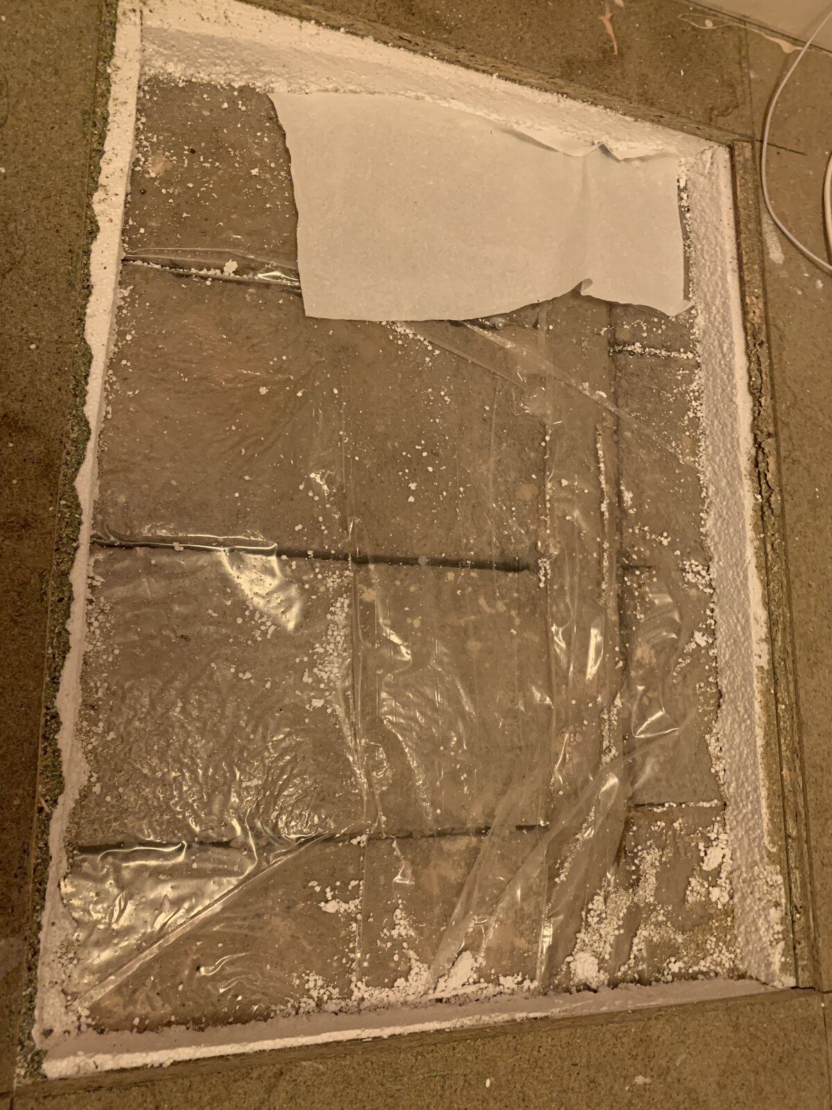 I have a strange problem with my floor. I recently took up my carpets to find some distinct and separate patches of damp on the floor. Thinking it was being caused by a burst pipe, I called a plumber who cut a piece out of the floor only to find no accessible pipes, nor sign of any damp whatsoever on either the polystyrene insulation layer or the DPM. More bizarrely, there is no sign of damp or staining on the underside of the damp piece of flooring. The damp is superficial and there is no mould growth.