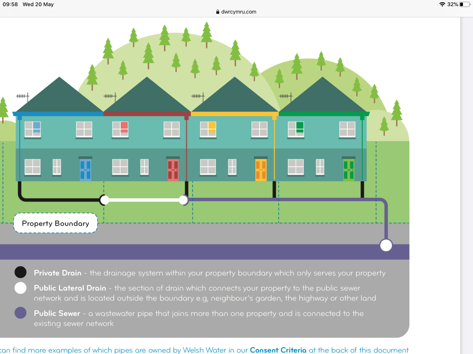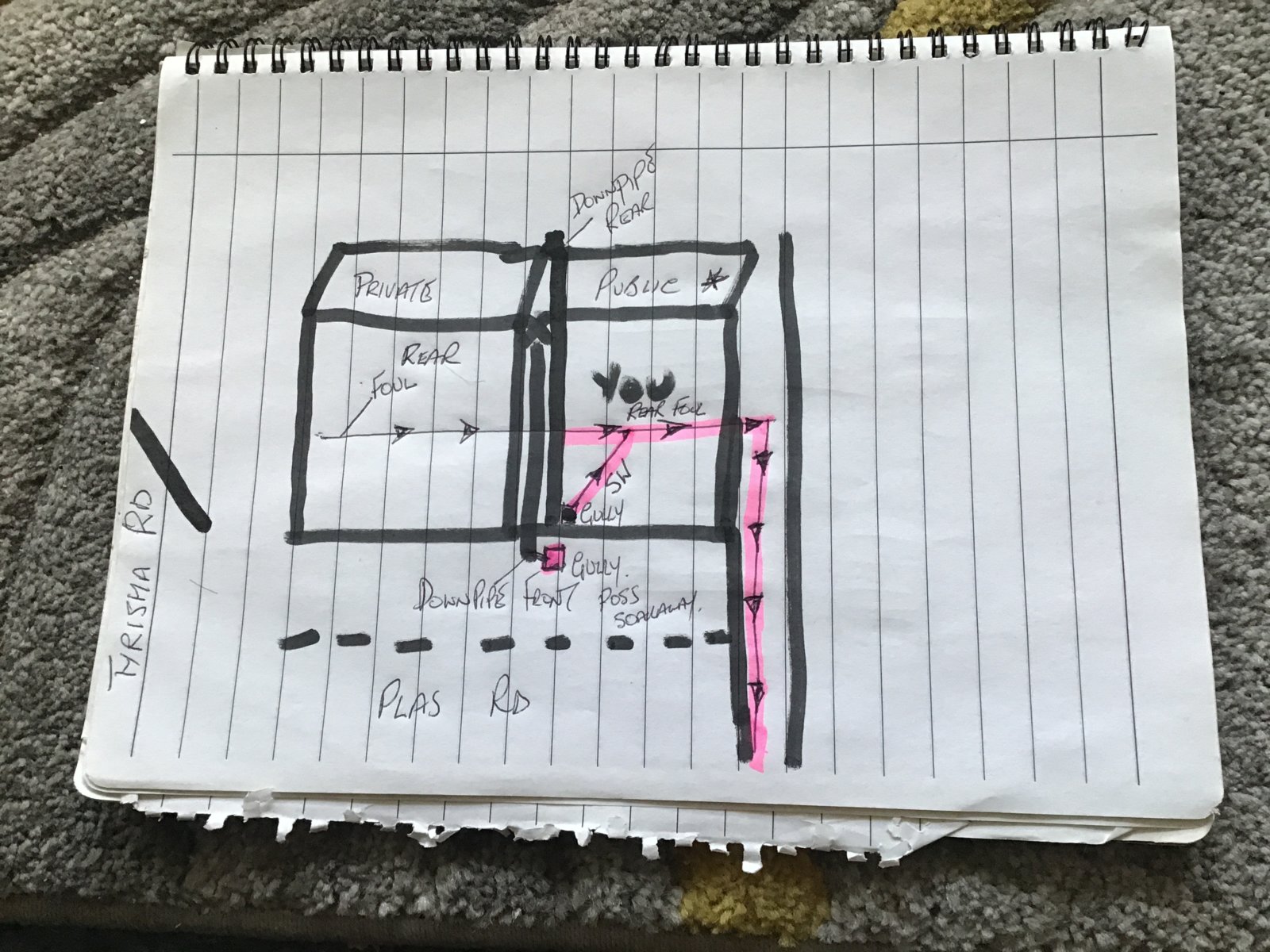 I am the last house on the road, and the land slops from the street onto the adjacent land/ common land lane. I've checked all the gullies, manholes etc and my pipe doesn't feed into any of them, unless there is a connection under the road without a manhole.