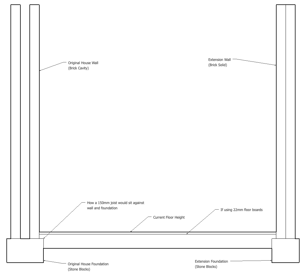 We're in the middle of renovating a house built around 1905. The kitchen for the house is in an extension at the back, this extension is thought to be a later addition but still built in the same style as the main house (block foundations, matching brick walls, etc.).