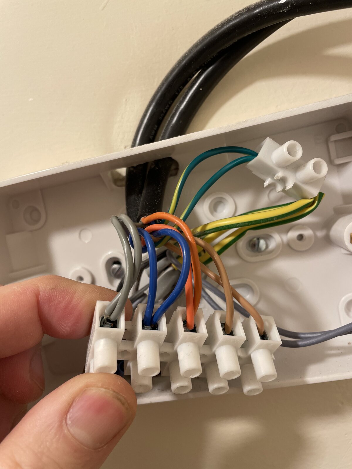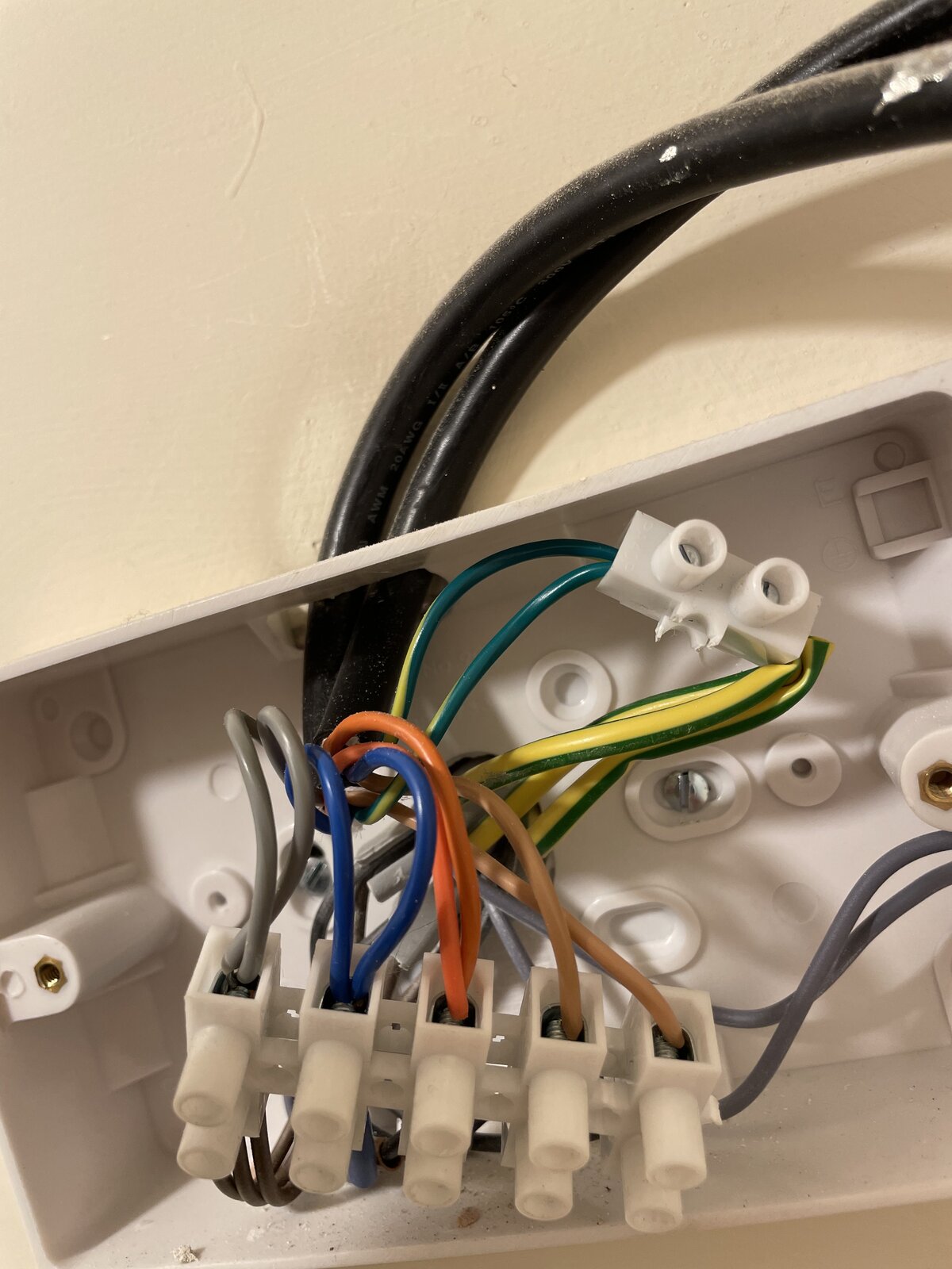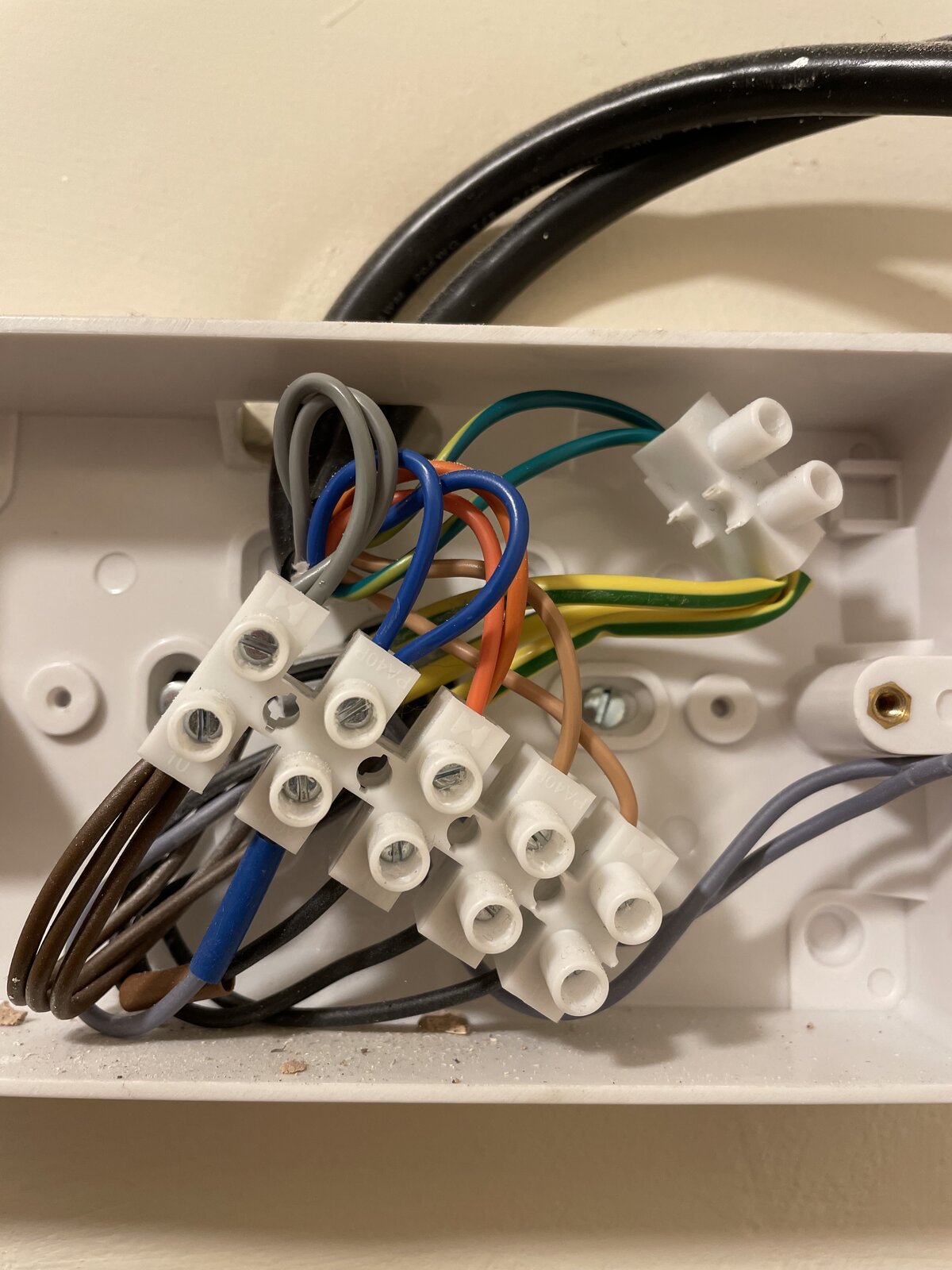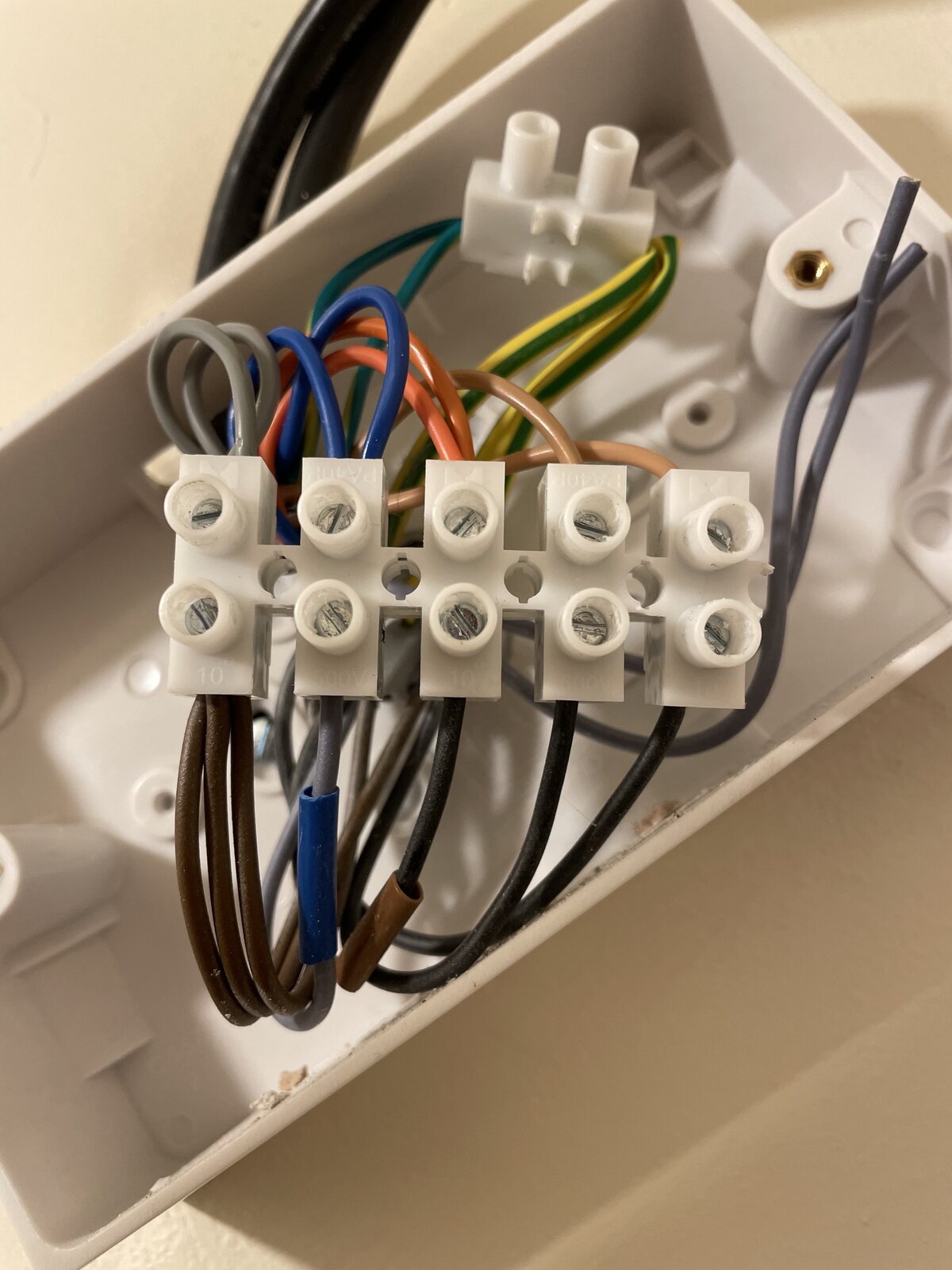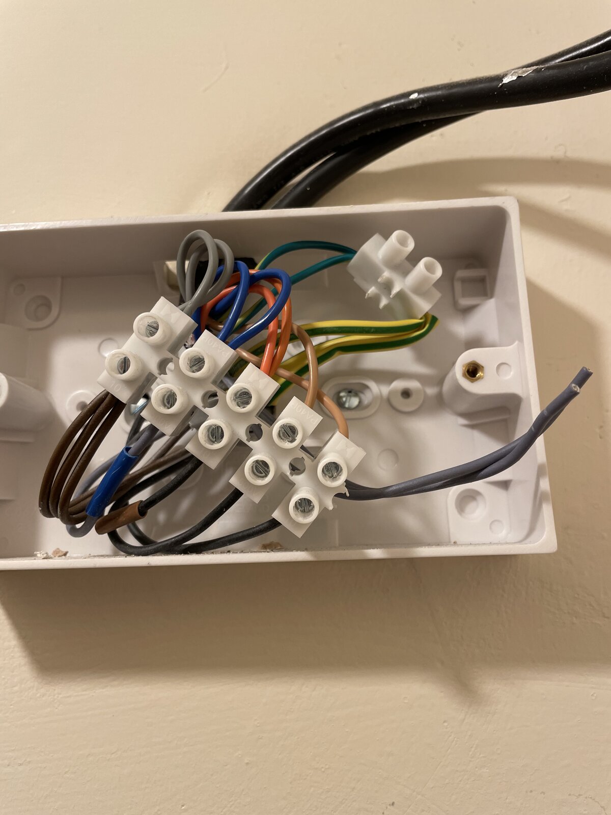 Black flex at the top goes to said valves. Easy enough to fit hive receiver here ? Any wiring diagram for hive receiver to wire into this junction box would be brilliant.