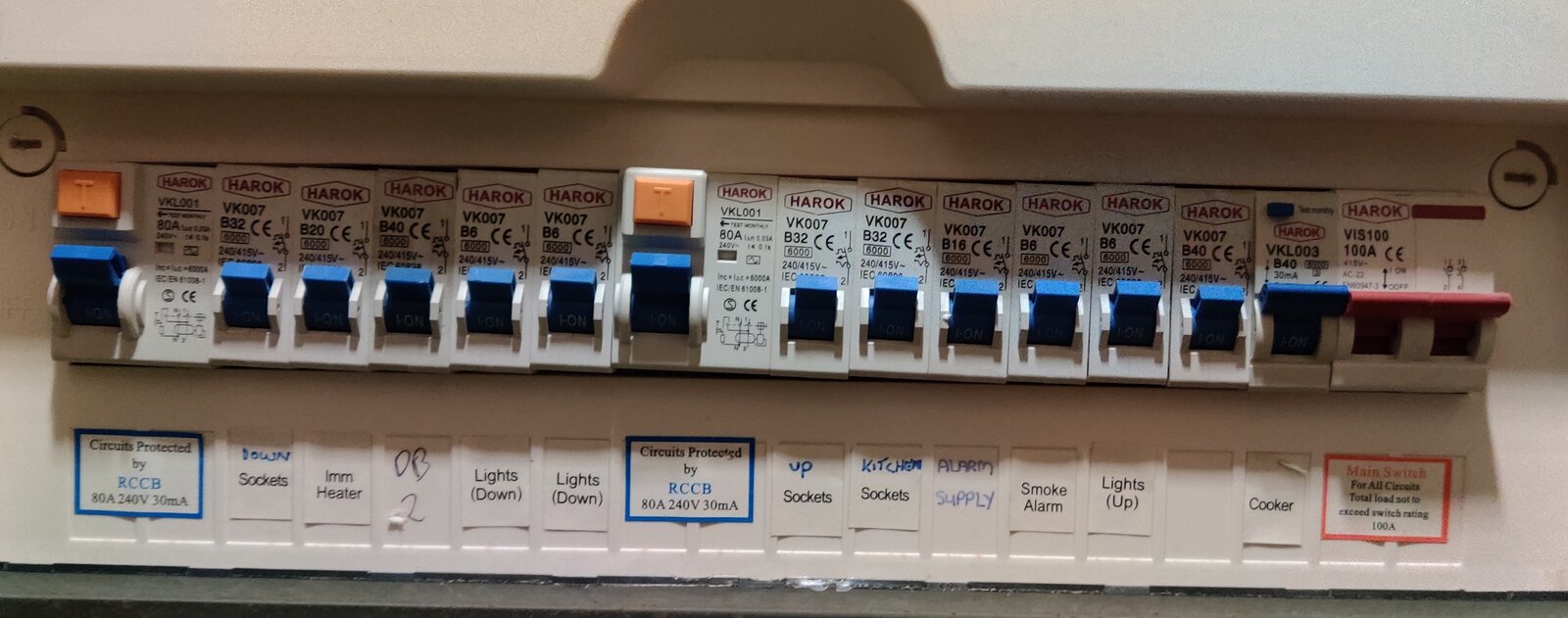In 2016 we had our loft converted and have 2 rooms and a bathroom up there. In total we have 9 double sockets, 4 spot lights, 1 shaving socket and 2 pendants lights. The ground and first floor were renovated in 2013 and had new electrics put in then also.
