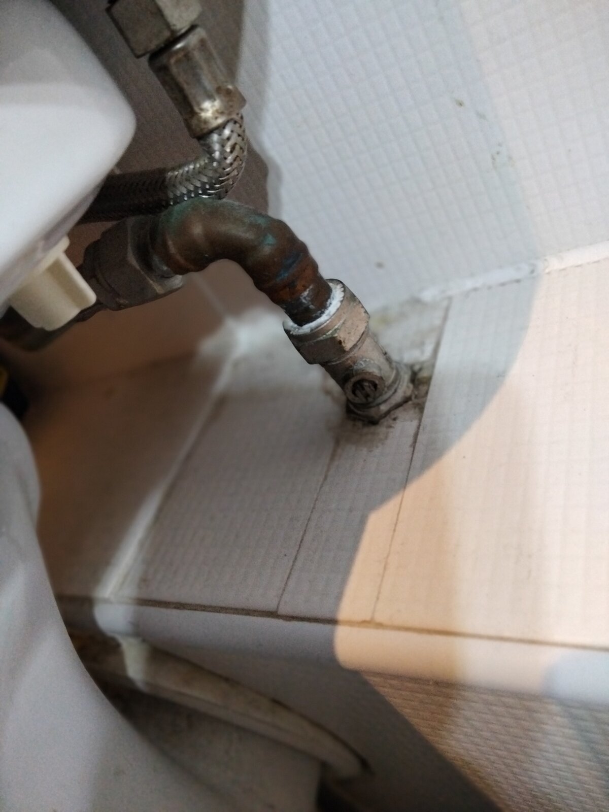 How in line is that ISO with the valve? Can you not get a small pipece of pipe and a tap connector onto it? I'd also be tempted to knock that little piece of time out to get it all to line up and then as above.