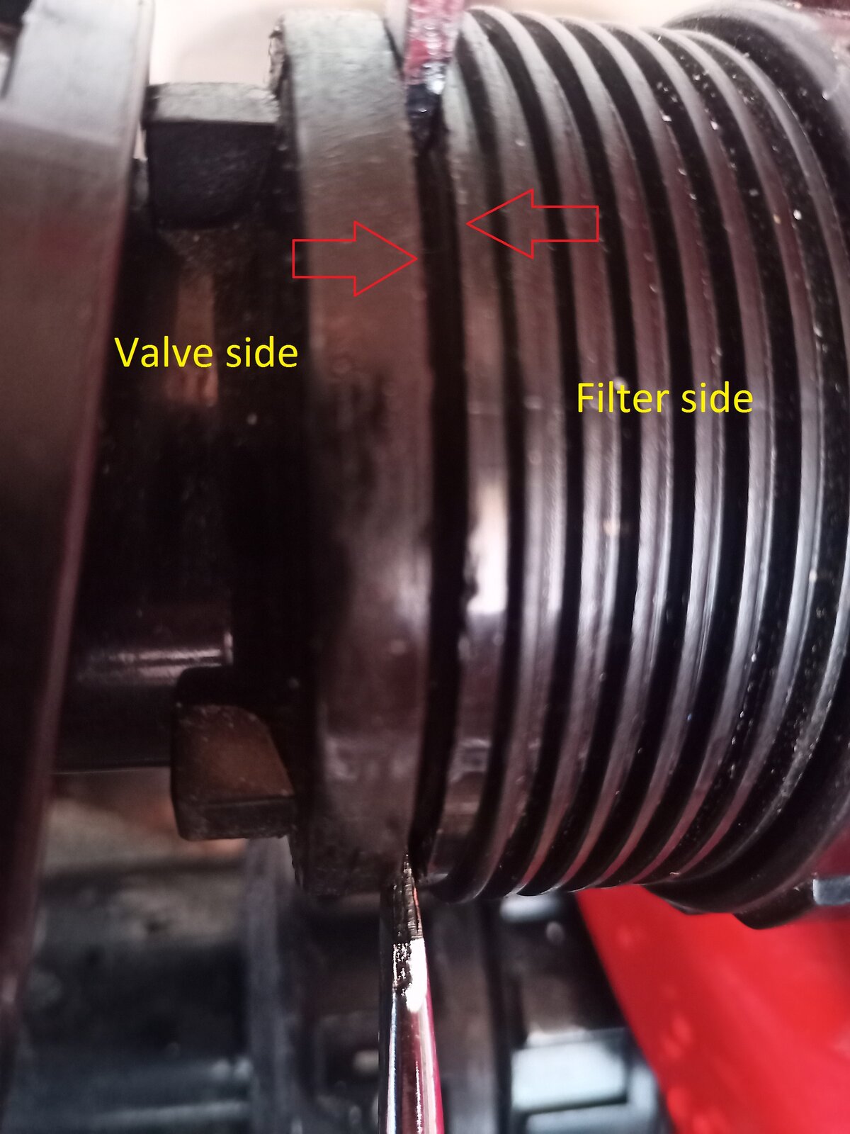 The pipe from the filter butts up to the pipe from the pump valve, but it's just two hard flat plastic surfaces as far as I can tell.