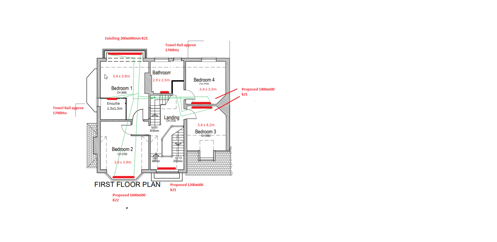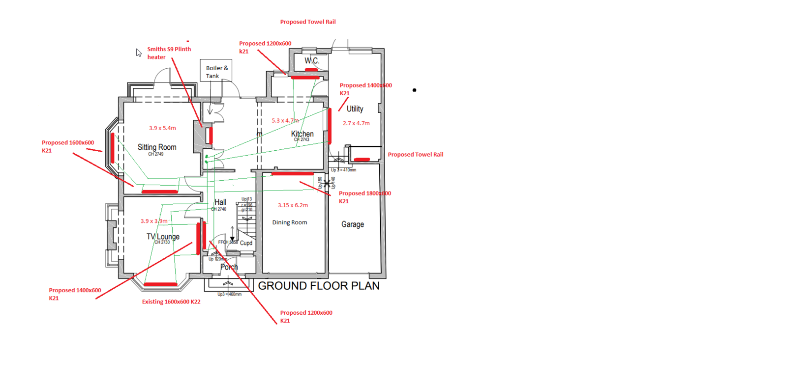 Now I’ve had a few heating guys over and I’ve been told my current boiler size is fine @ 38kw but also some state an 18kw one would suffice as well. They all said to put new runs of 22mm in and drop down to 15mm for each radiator.