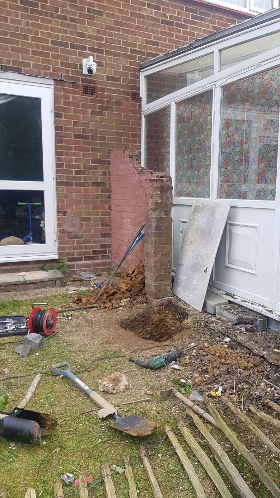 Just confused wether to leave a gap and cover gap to give the post enough concrete on all 4 sides or flush it sgainst wall with only 3 sides concreted