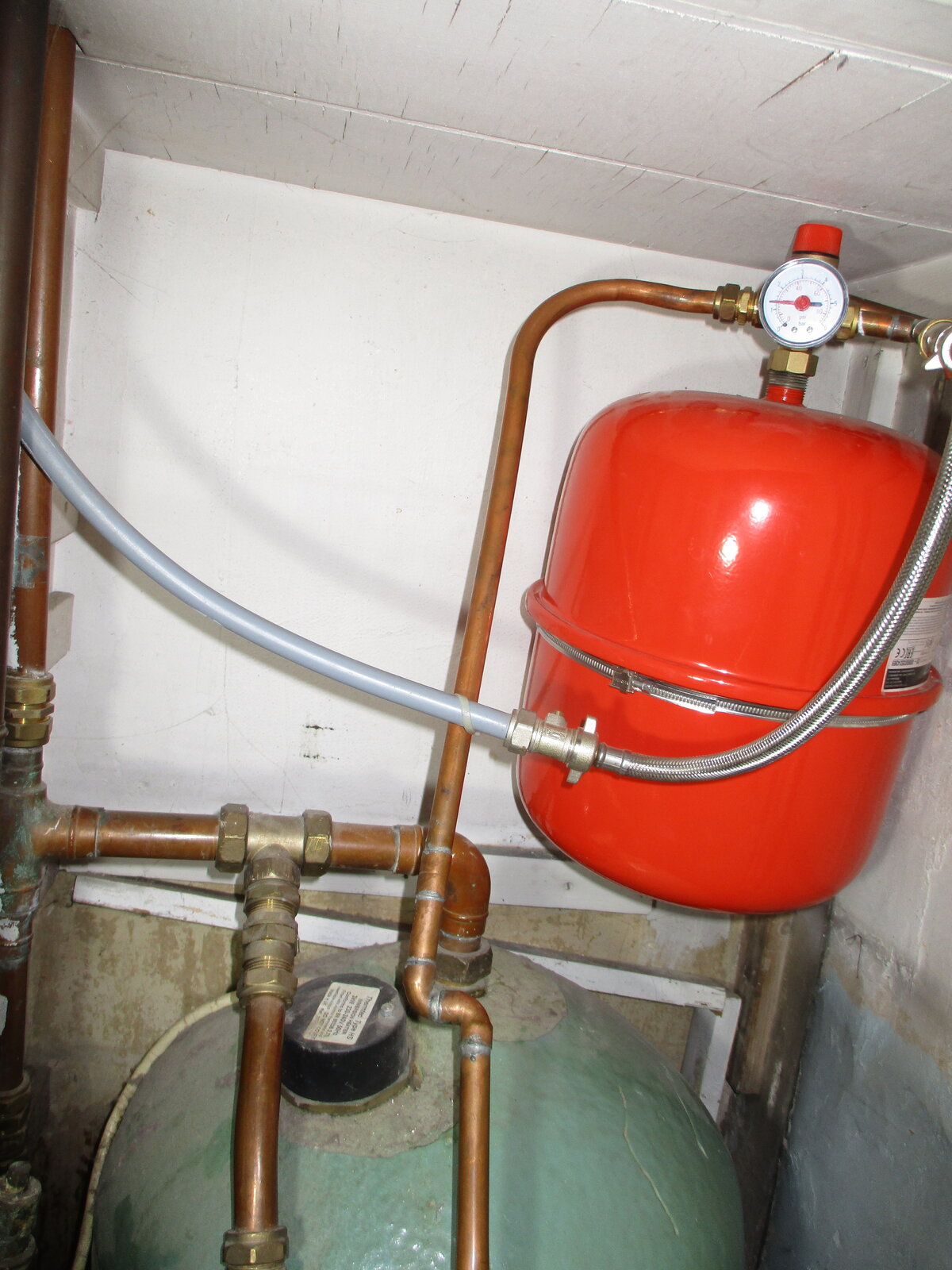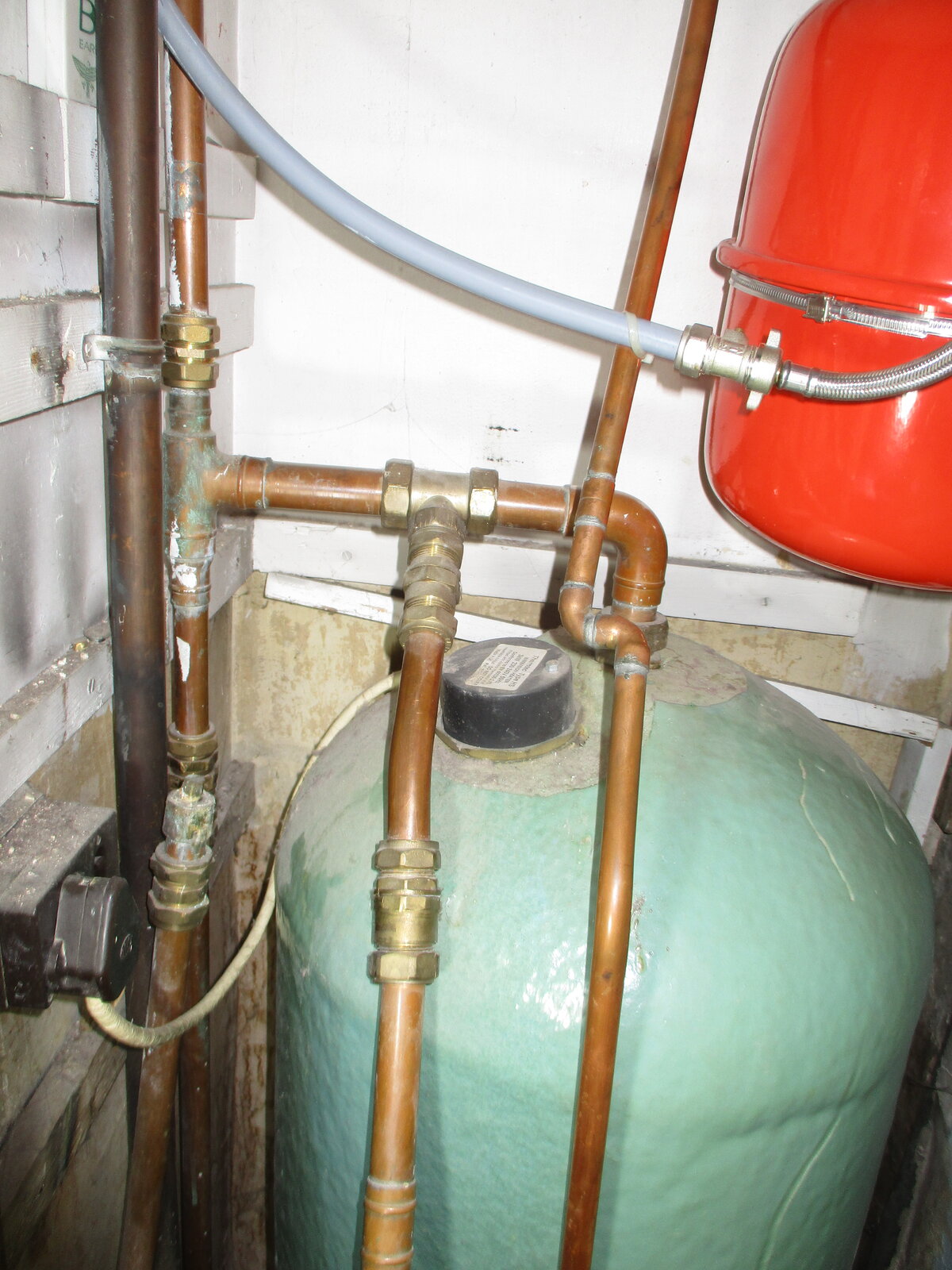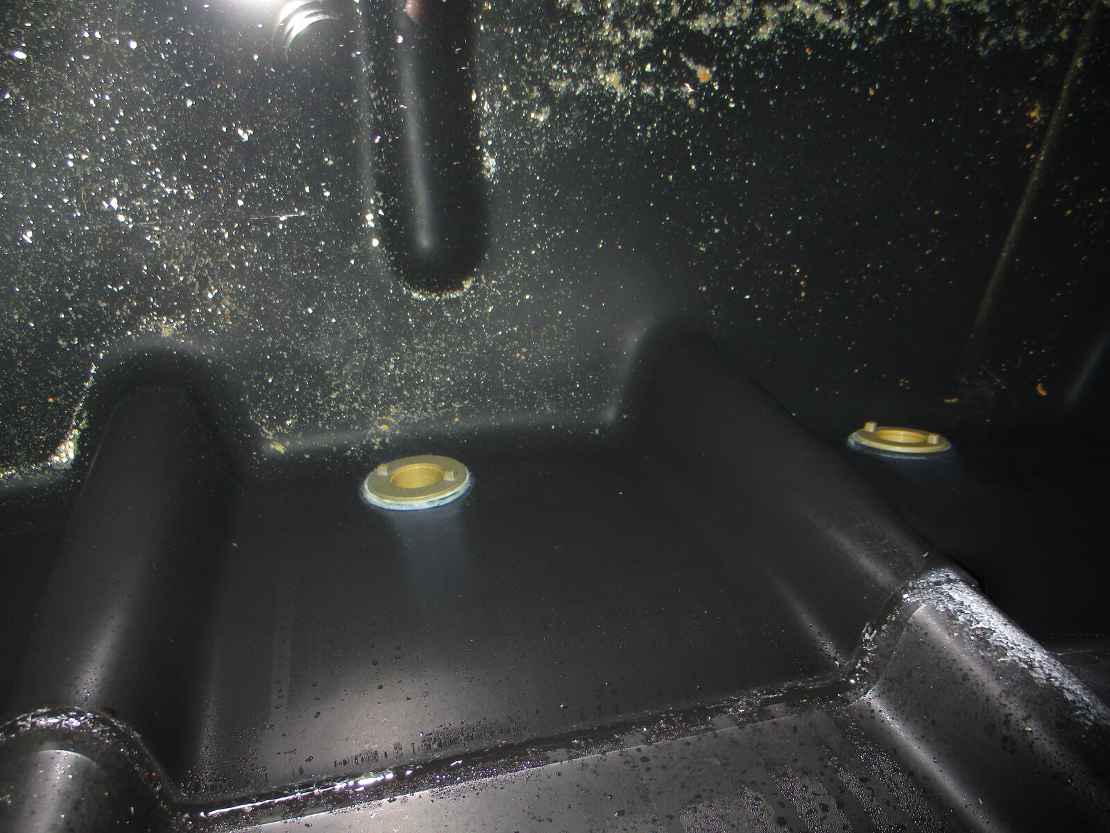 IMG_8354 is a shot of the inside front of the coffin tank, through the water. The upper part of the photo is the base of the tank. The lower part of the photo is the inside of the front wall of the tank. The outlet on the left goes to the garage, the one on the right goes to the Airing Cupboard.