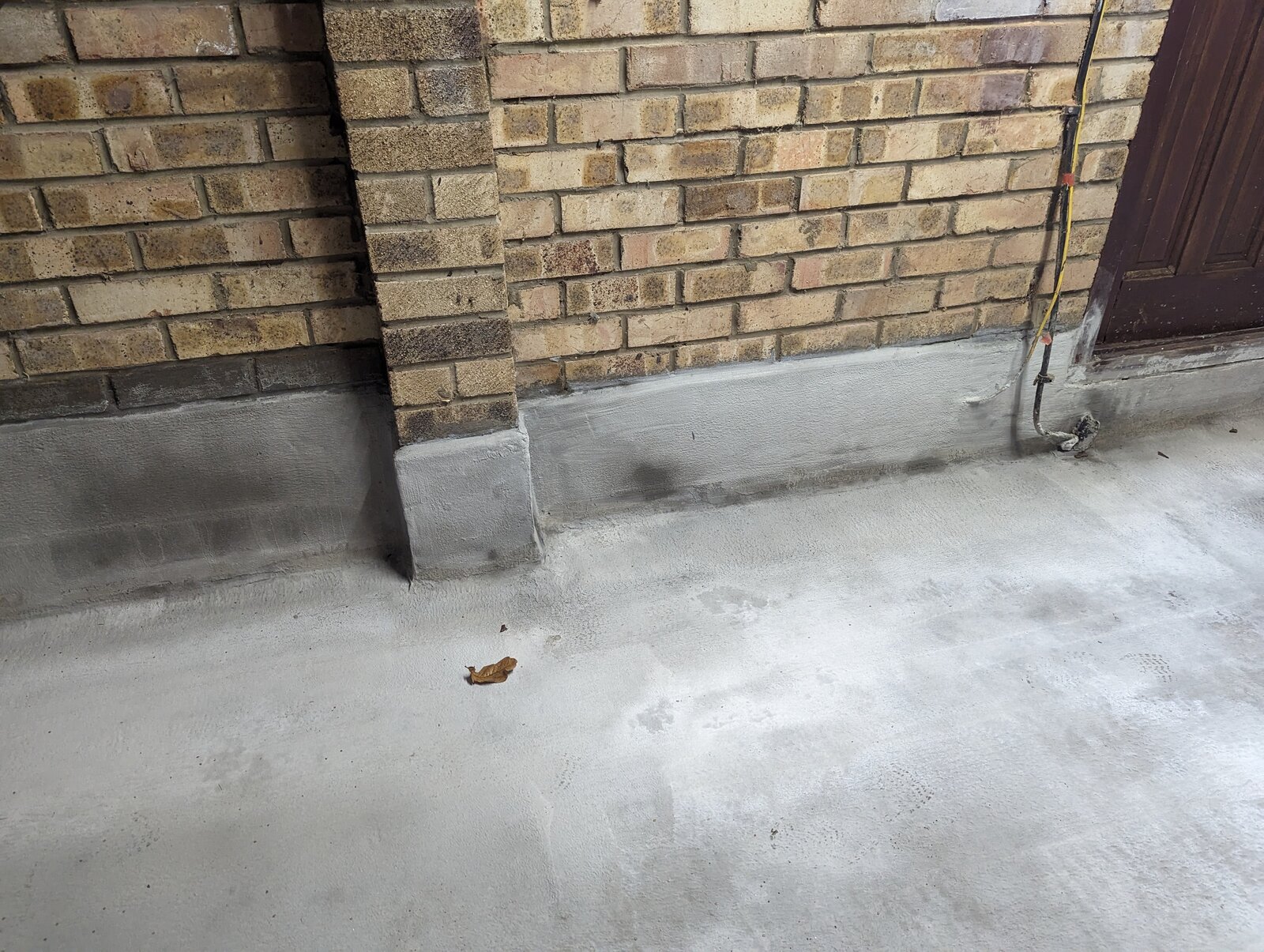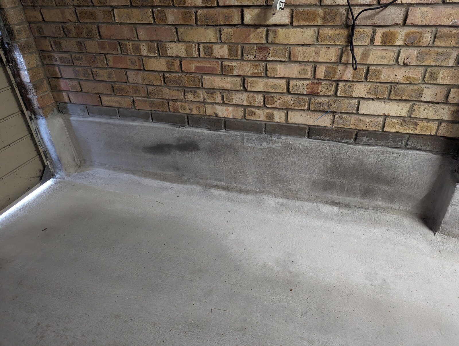 When there is heavy rain, small puddles would build up in the perimeter of the floor. One of the issues was that the previous owner of the house had put some decking higher than the damp course which ran along the garage.