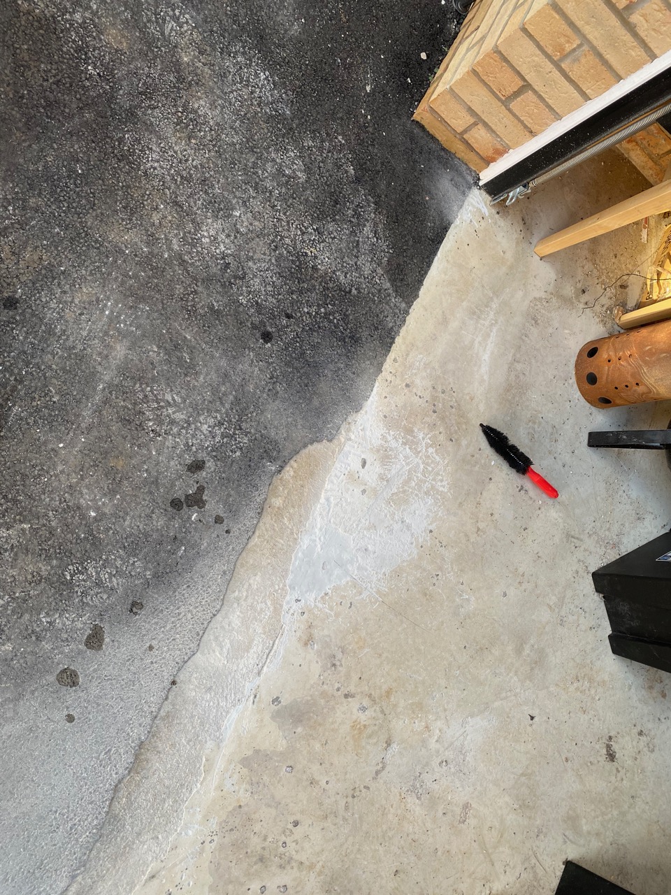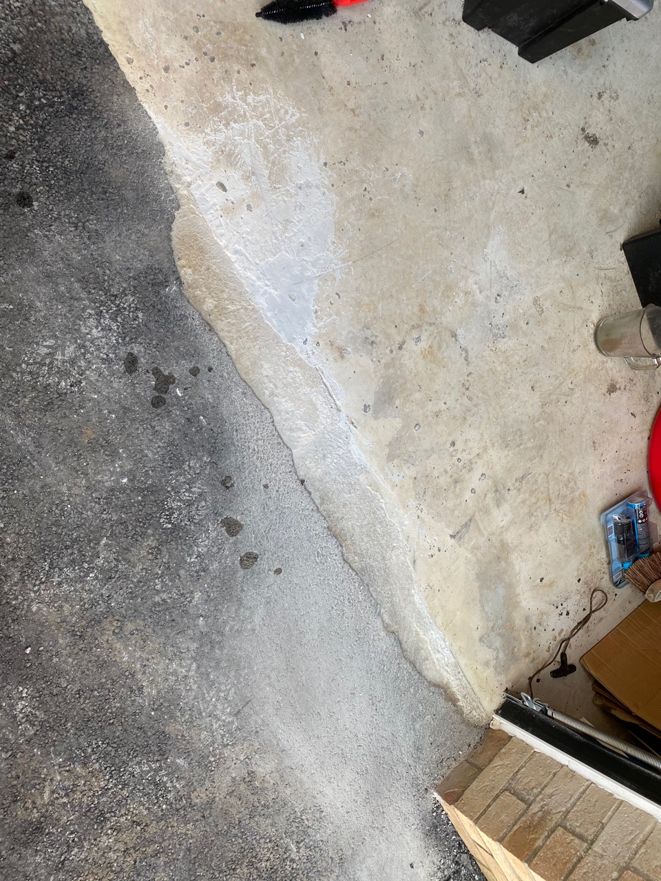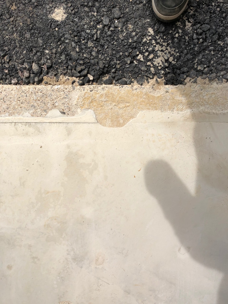 I am going to put a rubber strip under the garage door to stop water ingress and as you can see, I have peeled back some of the tarmac on top of the slab (it hasn't bonded very well to the laitance). See the second/third pics.