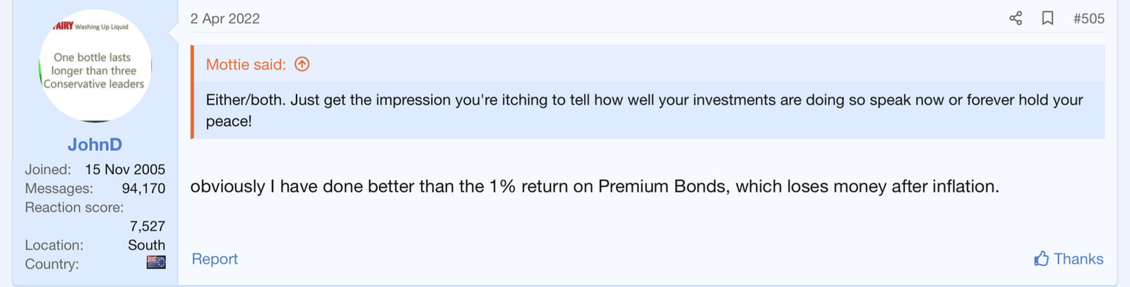 I have frequently said that holding savings in cash is a poor move because they will be eroded by inflation.