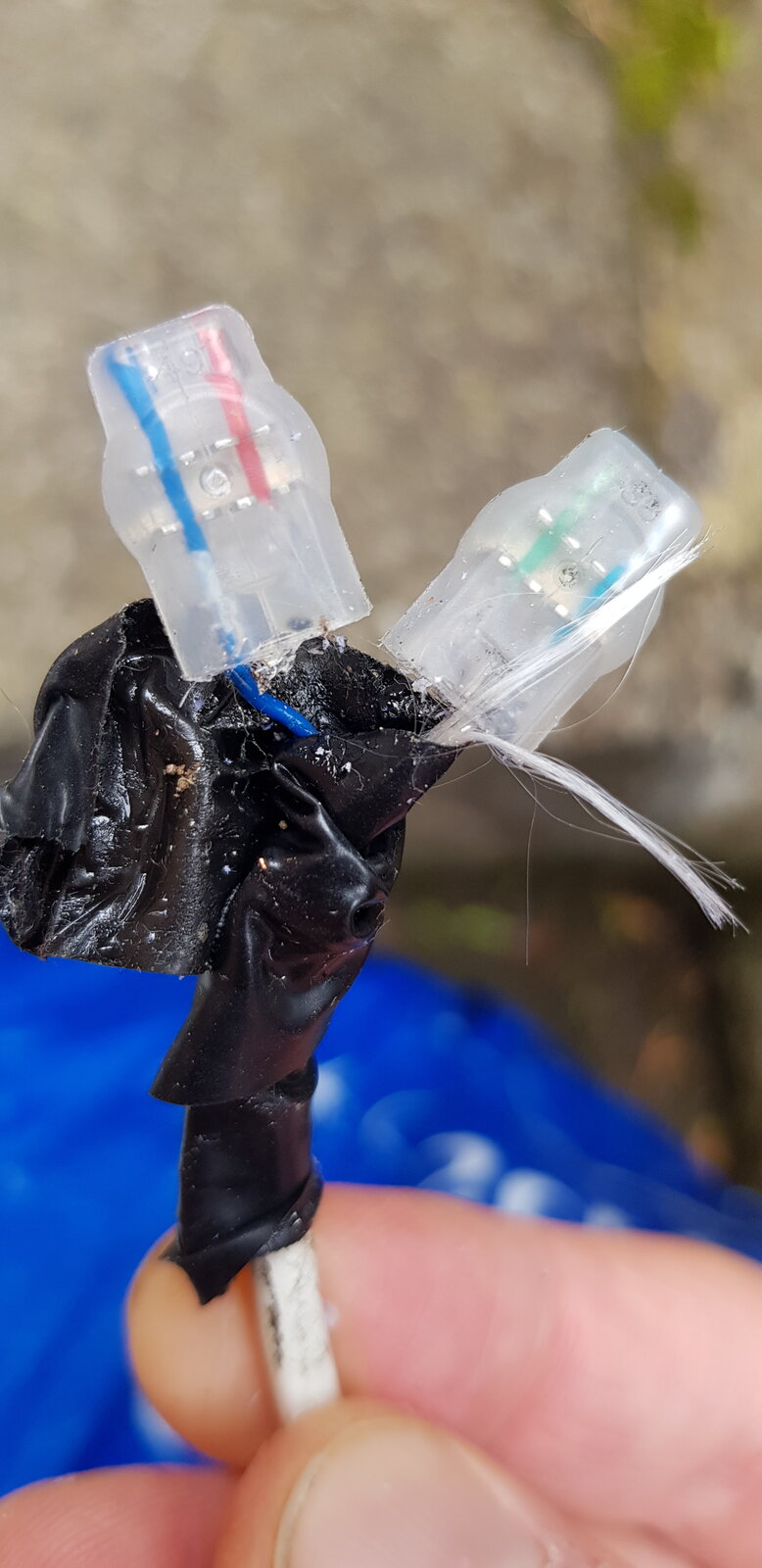 I got some new cable to replace the damaged wiring but I could not get a dial tone. I triple checked everything to ensure there was a good connection and that the wires were connected to the correct terminals. I tried wiring each socket separately to the router. Nope. Still no dial tone. This led me to the conclusion that the severing of the wire had produced a spark that had damaged both phone sockets.