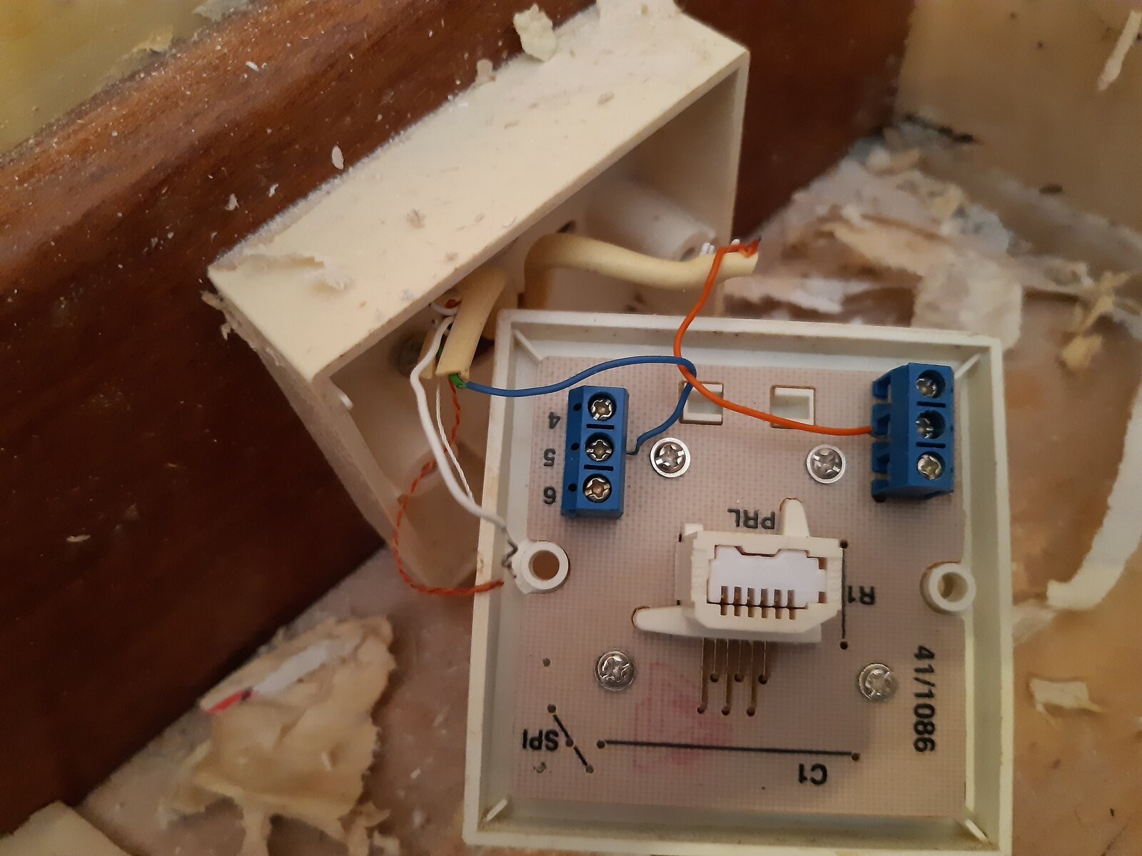 I had to detatch a landline socket from the skirting board and in doing so seem to have pulled a wire out. I can no longer dial out and if I dial in e.g. from my mobile, I hear it ring on the mobile but nothing on the landline. There are only 3 wires and 6 numbered connectors on the socket. (it's not the master socket)