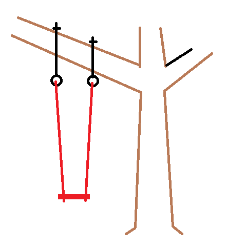 Hi, I want to fix a swing to an angled tree branch. If I attach both ropes to the branch the swing twists. I understand I need to put something rigid in, so that the pivot point for both swing ropes is at the same height.