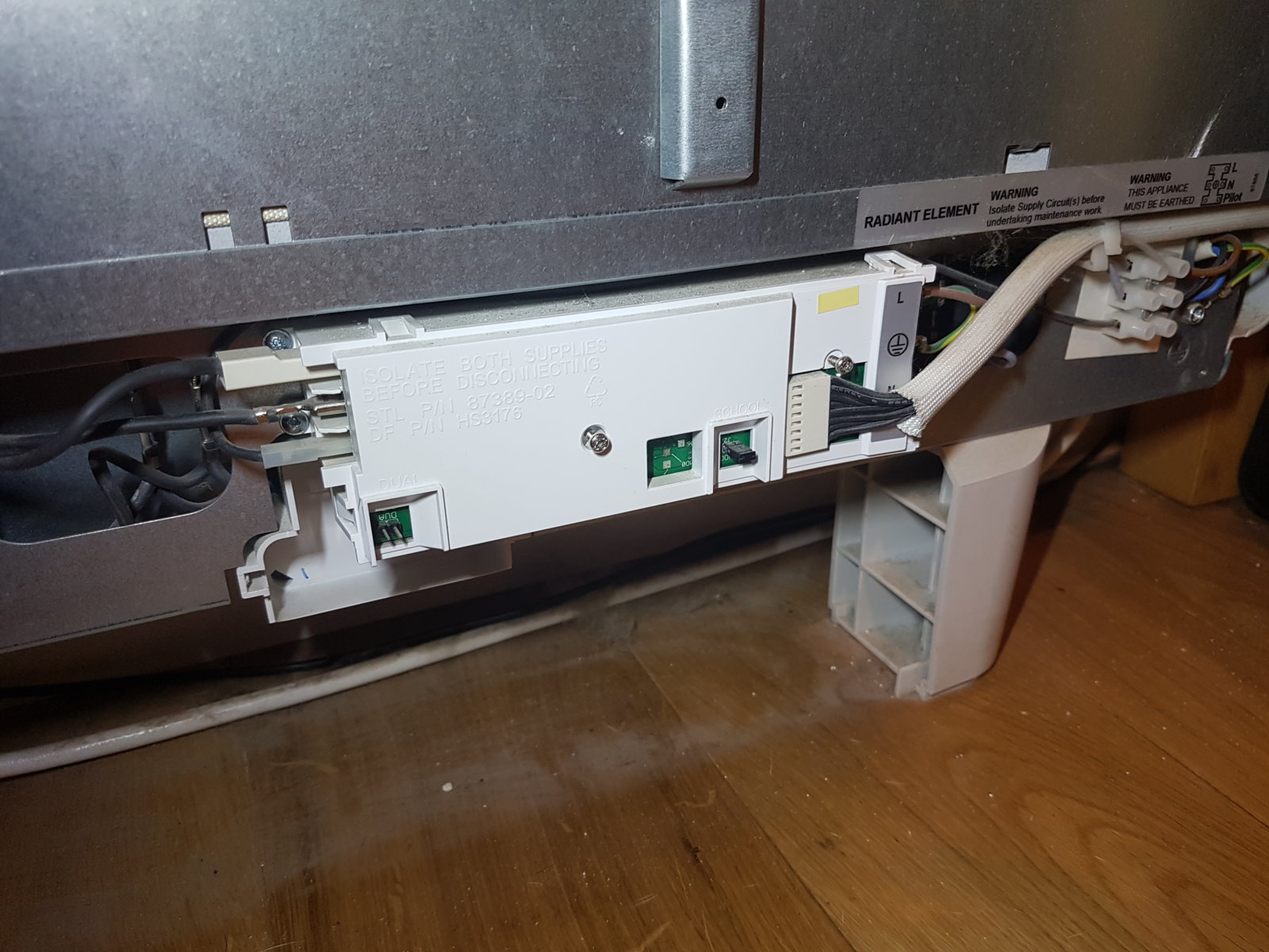 I tested with a multimeter, there's power going into the control module (both peak and off peak supplies), but I can't get a reading on the cables that attach to the off peak elements out of the control module.