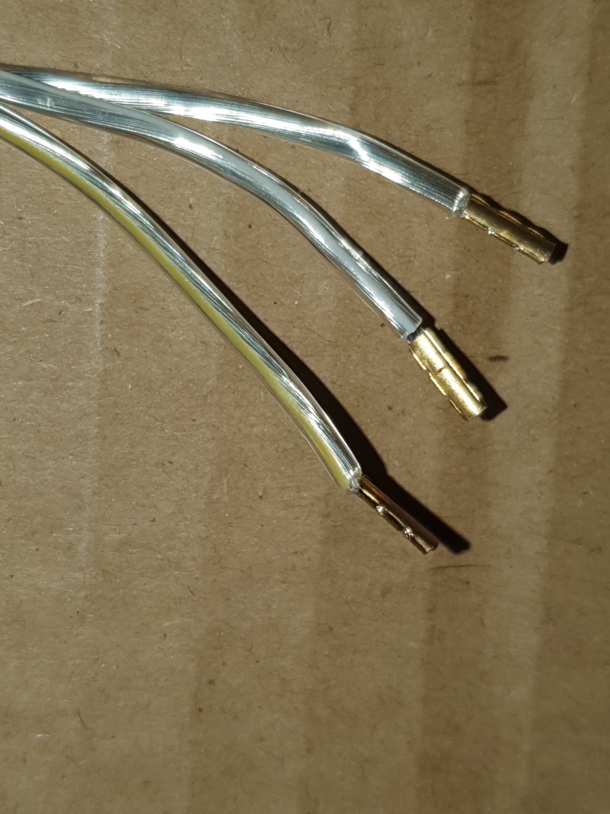 I've attached a photo of the wires, two have thin coloured thread running through them (white and yellow). There is also what appears to be an Earth wire on the "cup."