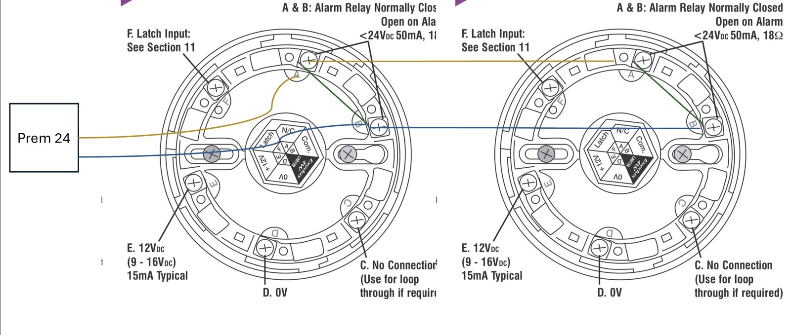 4. Wired in series from the zone terminals, to A and B on both detectors. Illustration attached to avoid uncertainty.
