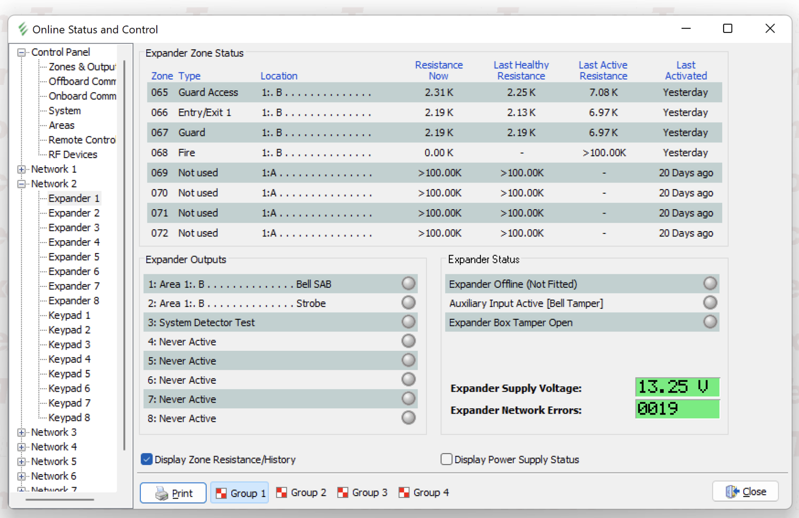 Will check resistance And report back in a bit. Interesting that you have seen this elsewhere. Yes a 640 panel with bell keypad and exodus wired to expander. I will try to add via keypad tomorrow. Hope to solve this as also want to add smokes to two other areas with their own expanders and bells etc but will get this one sorted first.