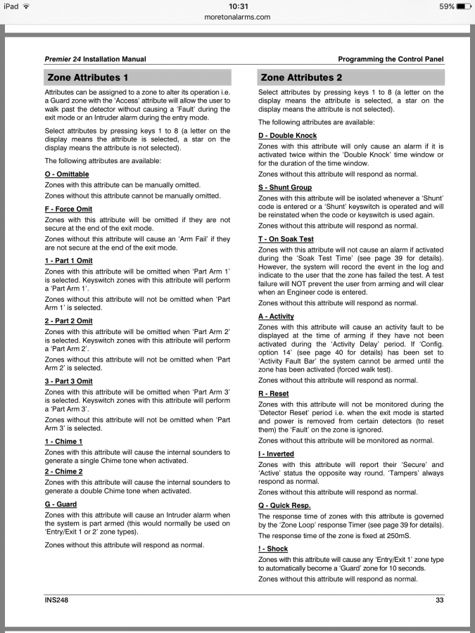 There seem lots of options on keypad for zones and when trying to set up I see in the attributes section letters A O E etc and these seem to random in the line ie could be lots of xxxxA or Axxxx or AxxOEx that sort of thing what does the refer to please (areas?)