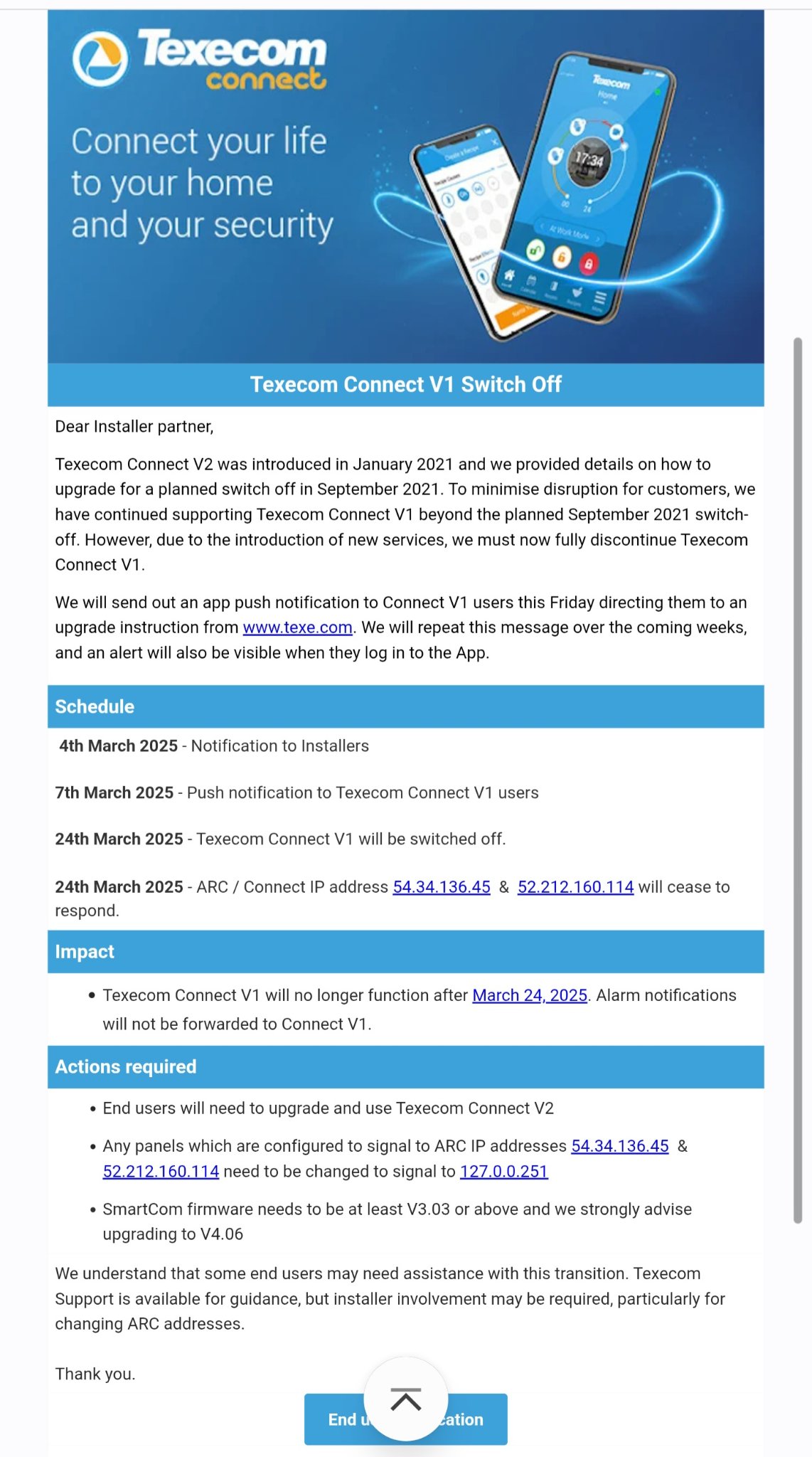I have a Texecom Elite 64 Live Panel (SW Ver 4.00.24LS1) with a Smartcom module that is about 10 years old everything was working fine up until a few months ago (how long I'm not sure) , when I was greeted with :