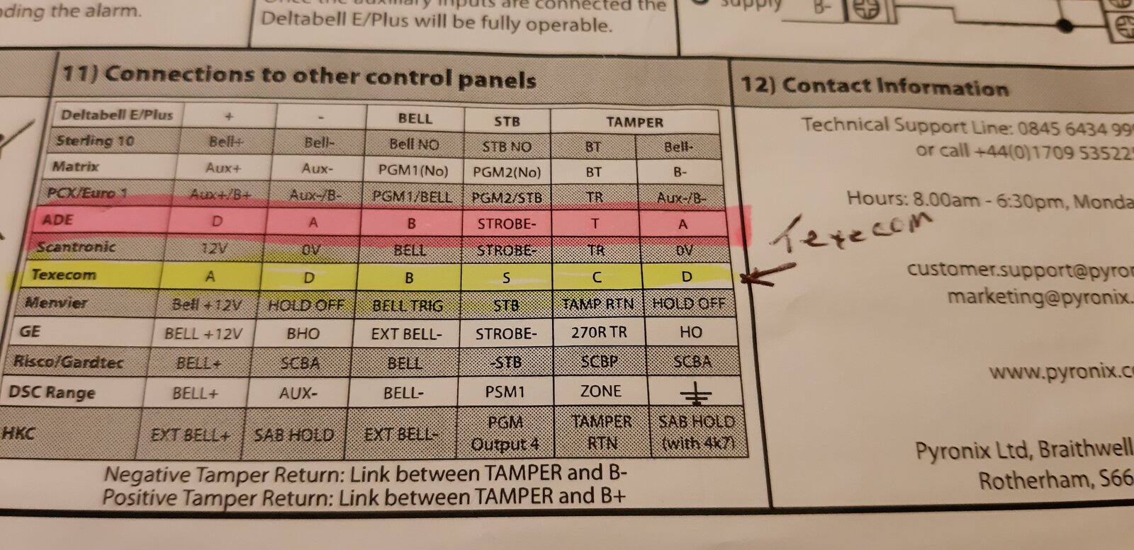 You could always change the sounder to a Texecom one, the wiring couldn’t be simpler.
