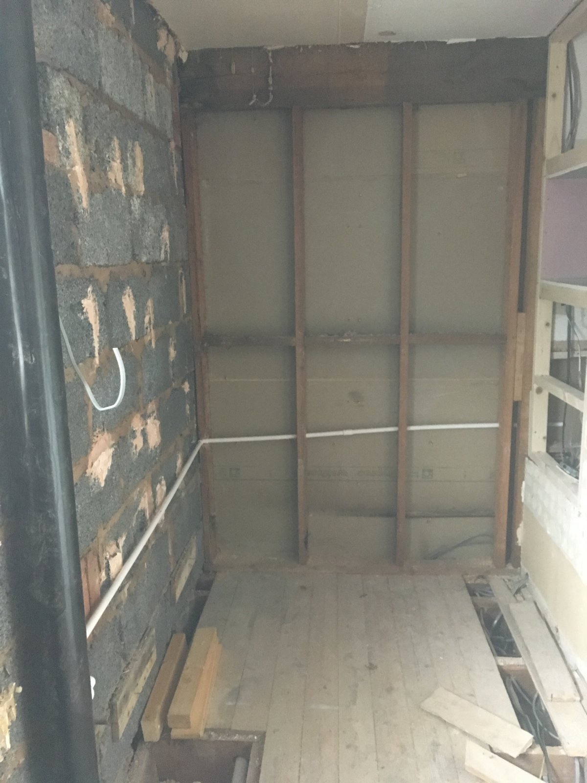 I don't want the pipe to run along the wall. I am putting a shower into that space. The plumber would like to dab and plasterboard over the walls on which the new condensate pipe has been adhered. The pipework for the shower will run behind the plasterboard and will be channelled into the wall.
